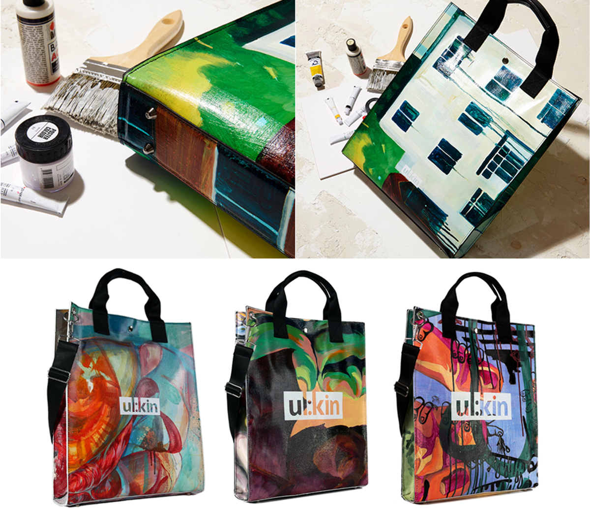 얼킨. 이 브랜드는 독특하게도 신진 아티스트들의 버려지는 회화 작품을 업사이클링한 가방을 만드네요. 신진 아티스트들에게 로열티와 함께 미술재료를 제공하고 전시까지도 기획하는 등 어린 작가들에게 많은 기회를 만들어주고 계십니다. 정형화된 옷을 해체하거나 젠더의 경계를 없애는 등 많은 메시지도 함께 전달하려고 노력 중이시네요! 이 부분들은 저도 환경에 대한 이야기 후에 차례로 다뤄볼 생각입니다. (패션이 가진 가능성, 노랗지 않은 싹수로서^_^)