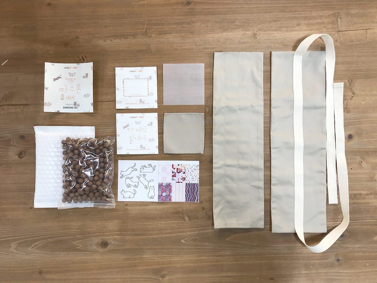 삼성SDI 임직원들의 봉사활동을 위해 공공공간에서 개발한 찜질팩 제작키트입니다. 노인복지관에 전달되었다고 해요!