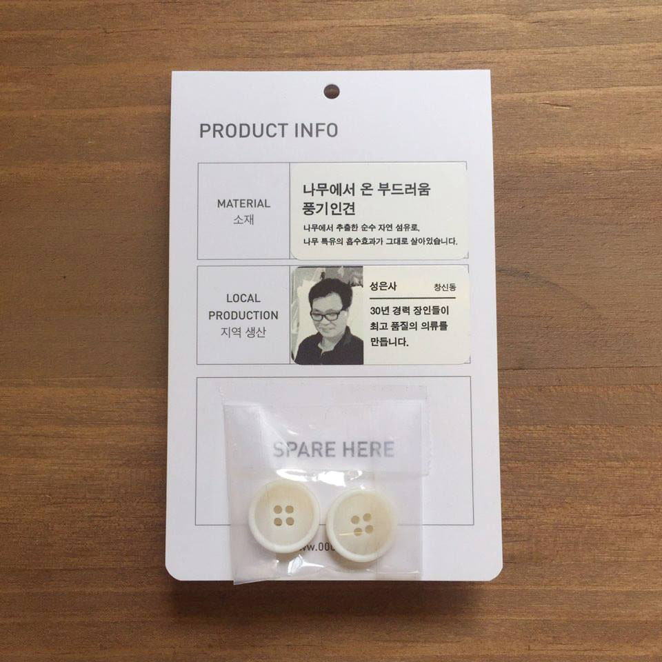 지역상생을 추구하는 만큼 공공공간의 제품에는 봉제사의 이름과 사진이 담긴 태그가 달려있습니다