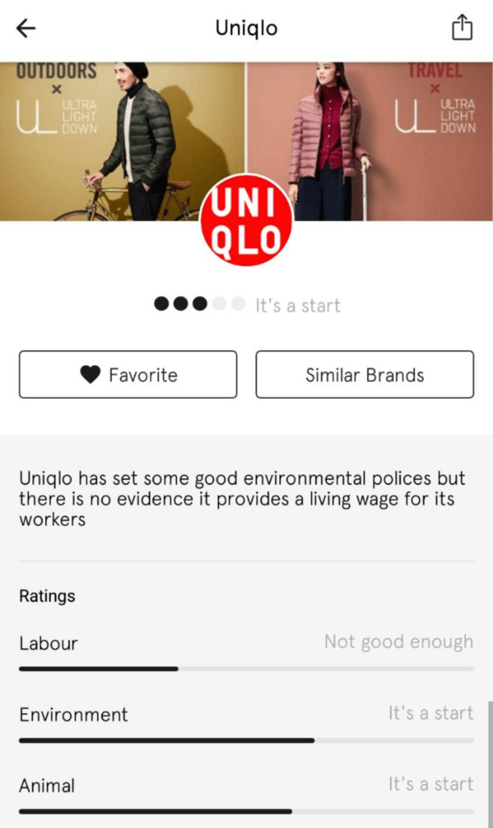 사람, 동물, 지구 이 세 가지의 가치를 바탕으로 브랜드의 윤리성을 평가하는 웹사이트입니다. 노동자들의 권리를 얼마나 존중하는지, 동물의 털과 가죽을 사용하는지, 환경보호를 위해 어떻게 노력하는지 등 구체적인 시스템을 통해 브랜드의 윤리성을 평가하고 점수화하죠. 올해 1월 기준으로 2200개의 브랜드를 평가했다고 합니다.