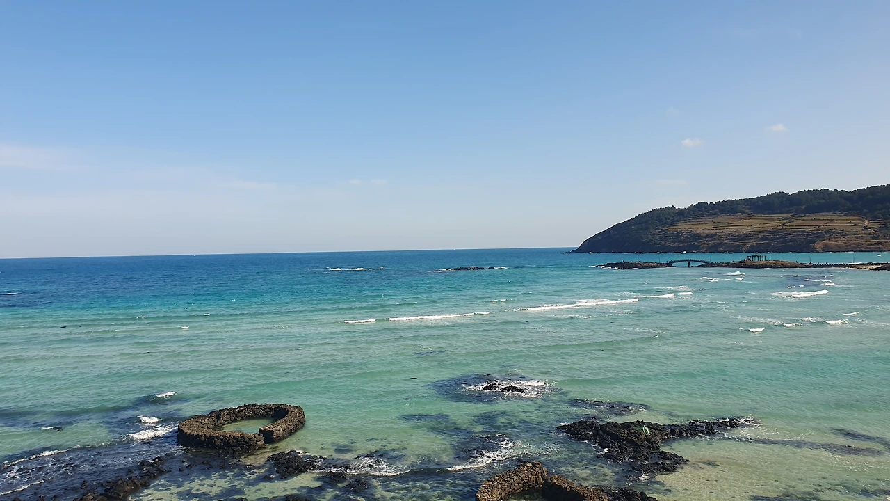 함덕에 도착하니, 제주에서 본 바다 중 가장 아름다운 바다가 펼쳐졌다. 바다는 오색이라더니, 정확히 다섯 개의 파랑이 있었다. 저 멀리 짙은 파랑, 중간쯤 짙은 청록색, 얕은 바다의 하늘색이 있었고, 햇빛에 따라 옥색으로 비치는 곳, 모래가 비쳐 누리끼리하게 보이는 곳도 있었다. 함덕은 그저 풍경이 아름다웠다. 저녁엔 저물어가는 하늘이 아름다워 바다를 한참 등지고 서있었고, 아침엔 맑고 푸르게 반짝거리는 바다가 아름다워 하염없이 넋을 놓았다. 함덕에 머무른 동안엔 맑은 날들이 이어졌다. 바다의 정경을 마음껏 누리라는 제주의 배려였다.