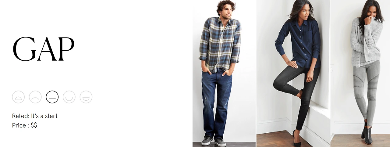 사실 Gap은 SPA브랜드의 대명사인 자라나 H&M과는 조금 다른 분위기를 풍겼어요. (저만 그럴까요?!) 훨씬 캐주얼하고 훨씬.. 뭔가 밀접한 느낌?! SPA브랜드로서 예상은 했지만 역시나 임금문제가 심각하군요. 한마디로 다른 유명 SPA 브랜드보다 많이 못하고 있어요! 분발하세요! 전세계에 퍼져있는 유명한 브랜드일수록 전세계에 퍼져있을 공장들을 책임있게 관리해야 할텐데. 그게 어려워서 이렇게 점수가 형편없을까요... 이제 많은 사람들이 가치있는 소비를 추구하고 너도나도 친환경적인 공정을 내세우는 만큼 갭도 이 변화에 앞장서는 브랜드가 되었으면 하네요.