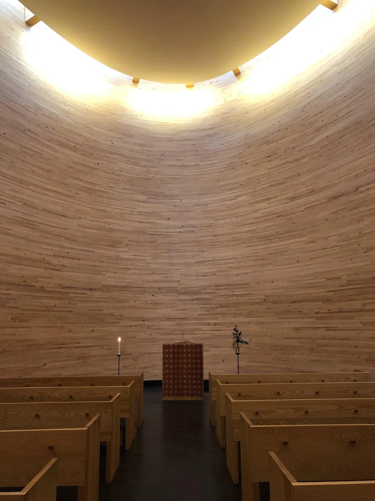 사우나에서 나와 차가운 바람을 맞으며 머리를 식혔다. 시내 광장에서는 크리스마스 마켓이 한창이다. 헬싱키에서의 마지막 일정으로 캄피Kamppi 예배당에 들렀다. 온전히 나무로 만든, 그것도 구부러진 곡선의 나무와 빛으로만 이루어진 자연주의 예배당. 돌은 모양 그대로 쌓을 수밖에 없지만, 나무는 구부릴 수 있다. 직선이 없는 완전한 곡선의 공간을 채운 공기는 하늘에서 내려오는 부드러운 빛과 잘 어우러진다. 아담한 예배당의 작고 오목한 공간에 앉아 있으면 나만의 둥지에 푸근하게 안겨 있는 것 같다. 뾰족하고 높은 첨탑도, 신성하게 우러러볼 십자가도 없이, 오로지 나무로 된 이 따스한 교회는 자신에게 침잠한 빛으로 둘러싸인 고요한 공간을 준다. 그곳엔 오직 빛과 온기와 모든 것을 부드럽게 녹여내는 공기뿐. 이곳에서는 나쁜 마음도 사그라든다. 오직 부드러운 마음, 선한 마음만이 남는다. 그것이 종교의 본질이겠지. 캄피 예배당은 그렇게 나무와 빛과 공기만으로 신성함을 만든다.