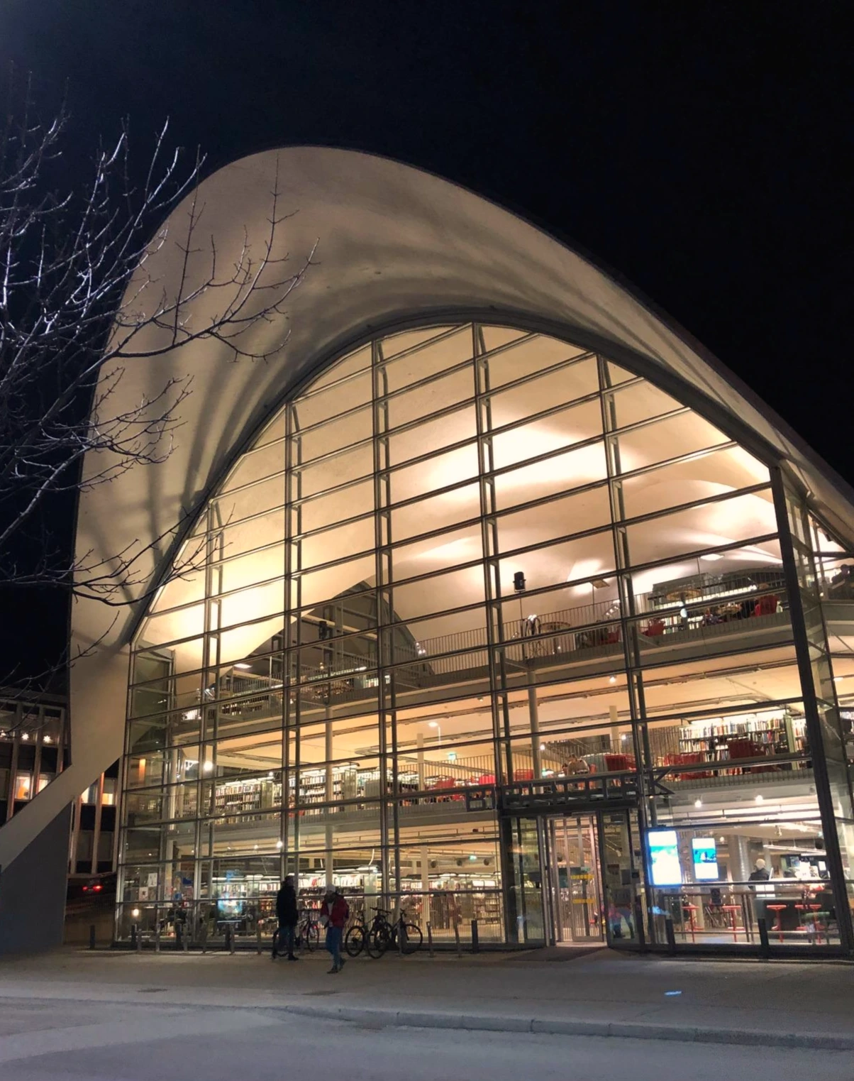 거리 한 켠 작은 광장에서는 크리스마스 장터가 거의 끝나 가는 듯 빵과 간식거리를 정리하는 사람들이 있다. 회전목마에선 아이들이 내리기 싫다는 듯 아쉬워하고 있다 작은 광장의 뒤켠에는 누구라도 지나칠 수 없는, 이 마을에서 가장 환한 건물이 있다. 마을의 한복판에서 가장 눈에 띄는 이 건물은 도서관이다. 전체가 유리로 되어 안이 훤히 보이는 이 건물에 잠시 발을 들여놓아 보았다. 조용하고, 아늑한 온기에는 낯선 여행자라도 반겨주는 훈훈함이 있다. 누구라도 지나가다 발을 쉴 수 있고, 책 한 권을 뒤적일 수 있는 열린 곳이 마을의 한복판에, 투명하게 서 있다.