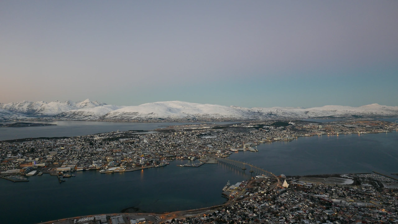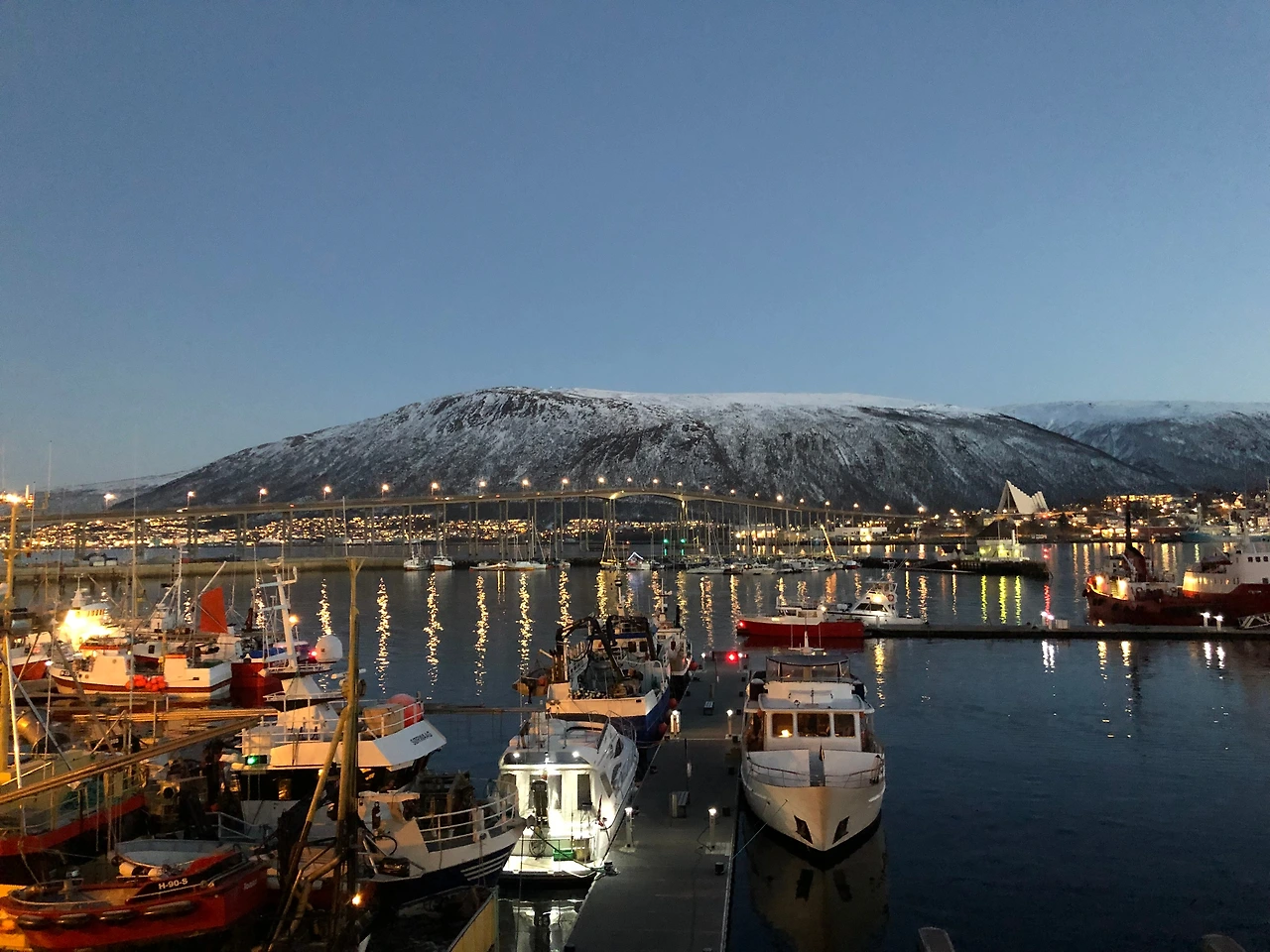 다음날, 잠시 동안만 비치는 햇빛이 반가워 서둘러 항구 맞은편에 보이는 산으로 가기 위해 길을 나섰다. 항구에는 러시아나 핀란드로 향하는 거대한 유람선과, 근처 바다로 나가는 작은 요트와 배들이 정박해 있었다. 항구에 늘어선 식당과 호텔들은 벌써 어스름한 노란 불빛을 항구 쪽으로 비추고 있었다. 반대편에는 고래등처럼 납작하게 엎드린 산이 눈을 뒤집어쓴 채 조용히 웅크리고 있었다. 트롬쇠 섬과 내륙을 잇는 긴 다리를 하나 건너면, 반대편에는 삼각형 모양의 단순하고 아름다운 건축으로 유명한 북극교회와 아름다운 트롬쇠 시내를 바라볼 수 있는 전망대가 있다. 편의점에서 버스 티켓을 사고 버스로 이십 분 정도 이동했다.