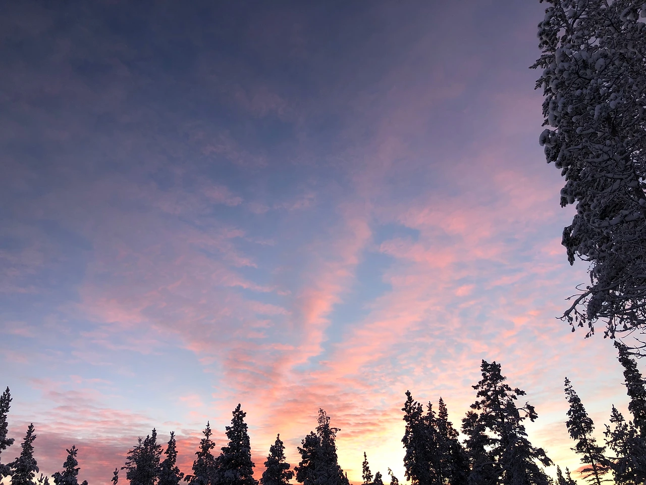 개와 늑대 사이의 시간, 오후 두 시가 되었다. 순록의 시간은 그렇게 빨리 사라졌다. 하루 종일 핑크빛이었던 하늘은 어느새 점점 더 붉게 물들며 오랫동안 자리에 머물렀다. 금빛으로 불타오르던 화려한 태양이 마지막으로 사라지고 나자 푸른빛의 어둠엔 샛별이 하나 둘 그리고 이내 무수히 깃들었다. 어둠 속에 얼음 같은 눈꽃을 피워 하얗게 빛을 발하고 있는 나무들과 쏟아지는 별들. 시간이 멈춘 수천 년 풍경 속에 지나간 시간을 얼려 놓는다. 하얀 나무의 그림자와 어둠의 고운 결 속에는 좋은 것이었던 나쁜 것이었던, 모든 것을 묻어놓을 수 있을 것만 같다.