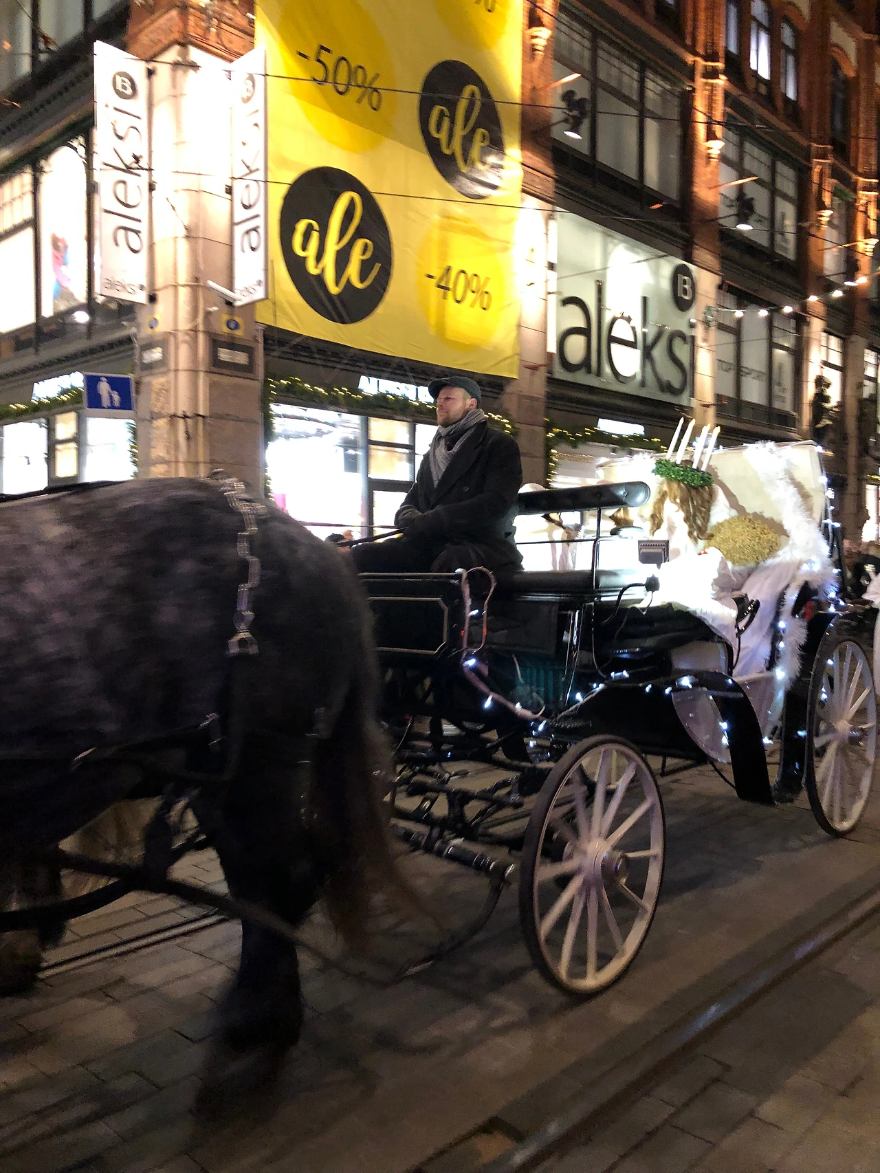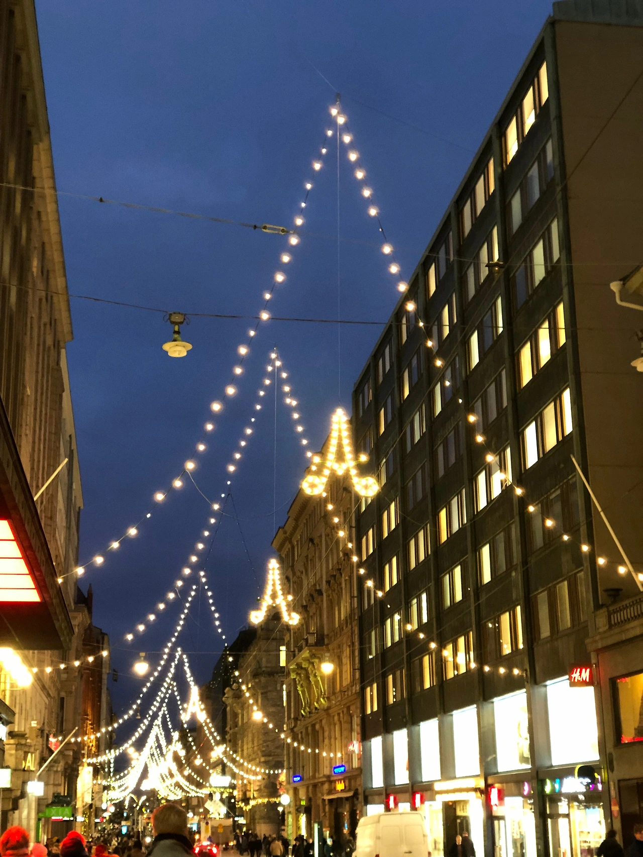 하얗고 또 새까만 밤의 마을에서 따스한 크리스마스의 기운이 가득한 헬싱키 시내로 들어온다. 소박한 중앙역 근처는 온통 크리스마스가 한창이다. 예쁜 진녹색의 트램이 도심을 지나고, 사람들이 바쁜 걸음을 옮기는 길에는 작은 돌이 깔려있어 반갑다. 하늘에는 온통 크리스마스 전구들이 낮부터 반짝반짝, 마음을 들뜨게 한다.