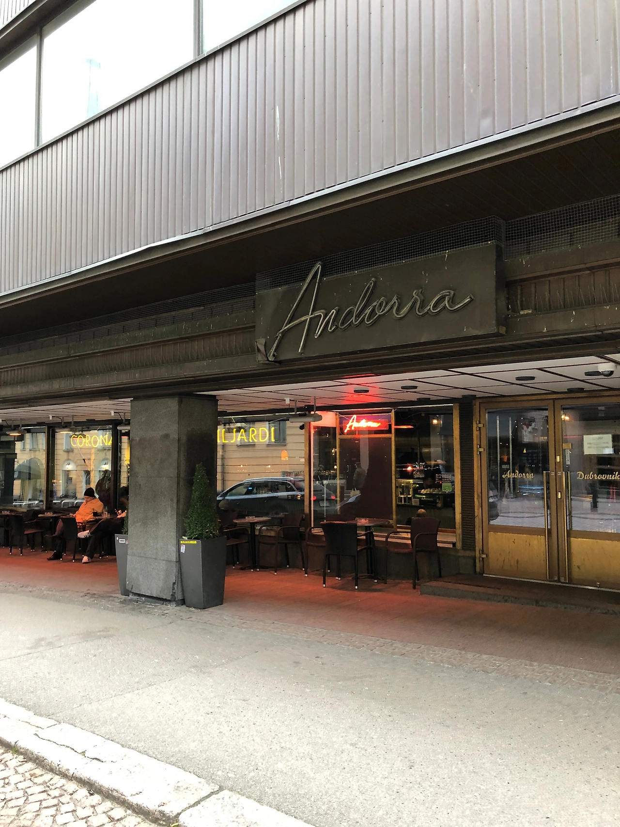 잠시 낮잠을 주무시는 아빠를 숙소에 남겨두고 이른 저녁 산책을 나섰다. 스토크만 백화점에서 시내 반대편으로 걸어가면 화려한 불빛이 가득한 시내 중심가와는 다른, 조금은 어둑한 골목으로 접어든다. 이곳을 찾은 이유는 안도라Andora 바를 만나기 위해서다. 핀란드 감독 아키 카우리스마키Aki Kaurismaki가 운영하는 바와 극장이 이곳에 있다. 그의 영화처럼 원색의 차가운 공간에서 무표정하지만 마음은 뜨거운 사람들이 술 한잔을 앞에 두고 묵묵히 앉아 있을 것 같은 바 안도라가 이 헬싱키 골목 어딘가에 있다고 했다(이곳은 2019년 겨울까지만 운영하고 이전할 예정이라고 한다). 이미 철거 중인 어둡고 질척이는 골목을 돌자 어스름한 불빛 사이로 금요일 밤을 즐기는 사람들의 왁자지껄한 말소리가 들려왔다. 바 안도라. 불 꺼진 네온사인 아래 나무문을 조심스레 밀자, 휑한 바깥의 풍경과 달리 사람들로 가득 찬 바에 서서 병맥주를 마시는 사람들의 말소리, 음악 소리, 당구공 부딪히는 청명한 소리가 들린다. 그들 사이에 껴서 이방인스러운 무표정함을 두르고 보드카를 한 잔 하고 싶은 마음을 애써 누르고 바 한 켠의 좁은 계단을 조심조심 내려간다.