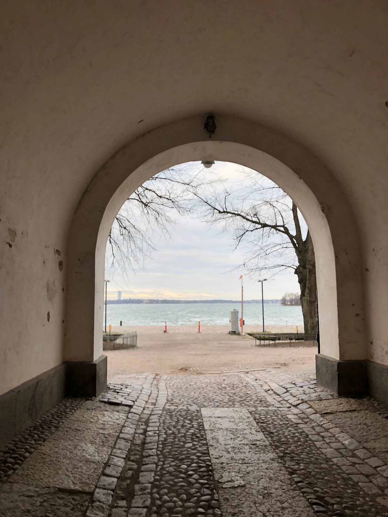 수오멘린나 요새로 향하는 작은 유람선이 출발하는 선착장은 바닷가에 면해 있었다. 러시아 풍 붉은 벽돌의 우스펜스키 성당이 보였다. 좀 더 뒤로는 어젯밤보다 뽀얀 빛을 우아하게 발하고 있는 헬싱키 대성당이 고요하게 서 있었다. 바다와 땅이 수평으로 만나는 바다, 먼 나라로 향하는 커다란 유람선이 드나드는 발트해는 넓고 끝이 보이지 않았다. 우리를 태울 작은 유람선은 많지 않은 사람을 태우고 붉은 벽돌 건물이 늘어선 해안을 따라 천천히 움직이더니 이내 수오멘린나 요새에 정박했다. 지금도 해군 사관학교가 있는 이 작은 섬은 본래 스웨덴이 건축했다가 지금은 요새로서는 사용하지 않는, 옛 건물들이 폐허처럼 남아있는 성곽으로 둘러싸여 있다. 천천히 한 바퀴 걸어 산책할 수 있는 요새에는 버려진 대포 한 대만이 쓸쓸히 남아있을 뿐, 시골 마을의 산책로 같다. 기념품 가게를 겸하는 작은 카페에서 진한 코코아를 마시며 나무에 그린 엽서 몇 장을 기념품으로 사고, 바다가 작게 보이는 요새의 벽 사이로 사진을 찍었다. 이파리가 하나도 남지 않은 스산한 나무와 노랗게 마른 들판은 황량했지만, 춥거나 을씨년스럽지는 않은, 따스한 아침 노란빛으로 가득한 산책로였다.
