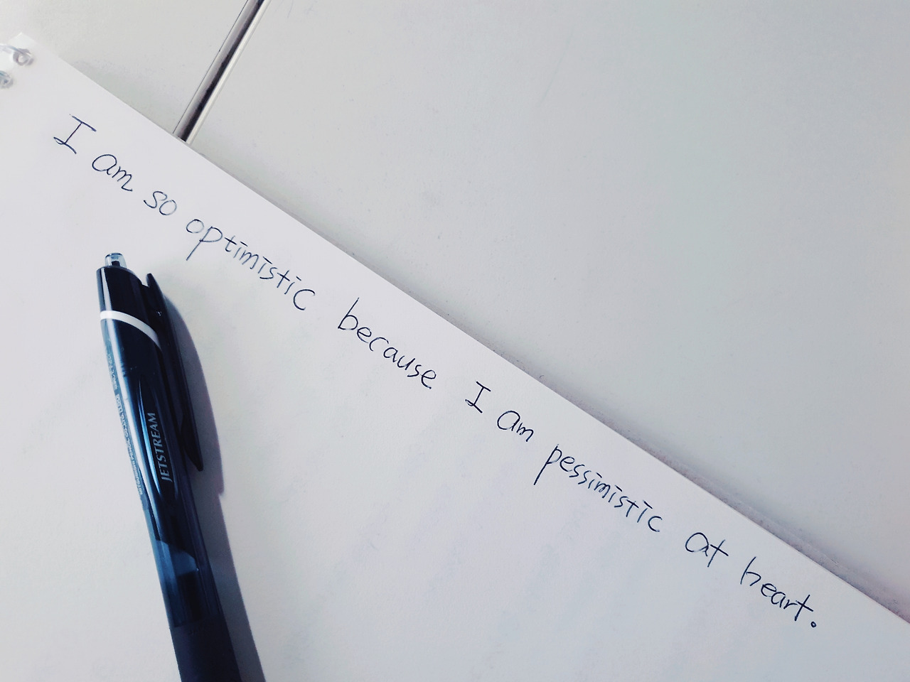 우리가 그토록 원하는 답은 긍정과 비관의 양단 어딘가에 고정된 것이 아니라, 상황에 따라 자리를 유동적으로 옮겨가는 것이 아닐까 한다. 다만, 불완전한 내가 비관 끝 단에 서서 영혼을 상하게 하지 않기를, 심한 긍정의 끝자락에 서서 최악의 시나리오에 무방비 상태가 아니기를 바랄 뿐이다.