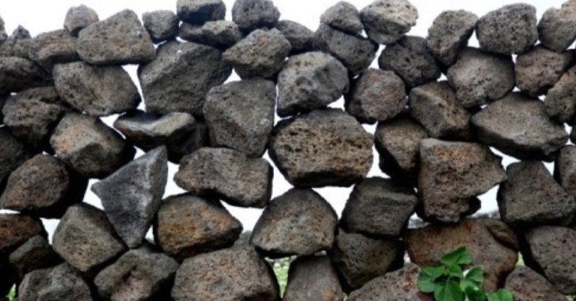 화산 폭발로 만들어진 현무암의 구멍과 또 그 현무암을 얼기설기 품자 모양으로 돌담을 쌓으면 구멍 사이사이로 바람이 통과되고 그 세기가 약해지면서 무너지지 않고도 담장의 역할을 한단다.