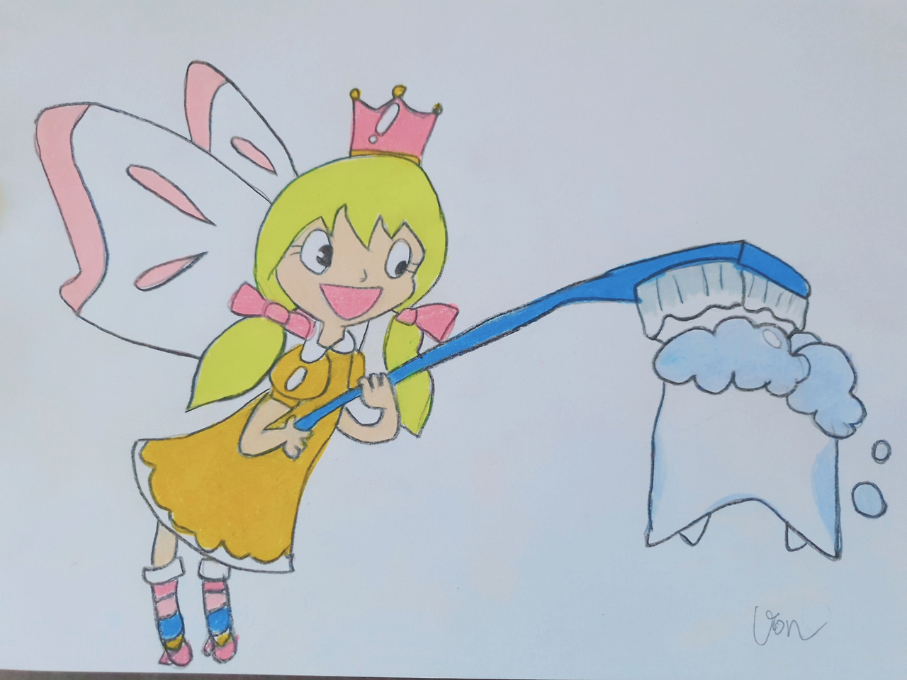 “엄마, 윗니는 하얀데, 아랫니가 조금 노란 것 같아요. 투스 페어리가 아랫니 두 개를 안 가져가면 어쩌죠? 엄마가 마무리 좀 해줘요.”