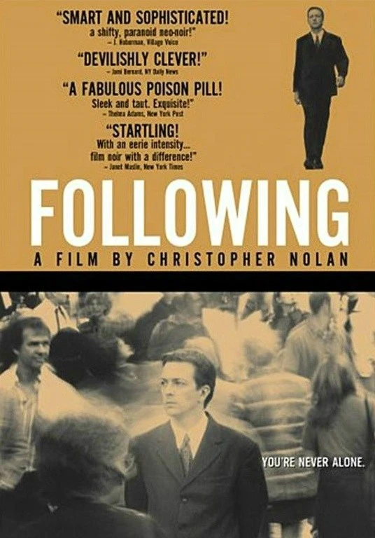 우리는 영화 '미행'이 감독의 다음 영화인 '메멘토'와 닮아 있다는 것을 알수 있다. '메멘토'는 아내가 살해된 후 단 10분밖에 기억을 못하는 단기기억상실증에 걸린 주인공 '레너드'가 사진과 메모에 의존해 사건을 쫓는 추적 스릴러 영화다. 감독은 '미행'에서 보다 훨씬 더 적극적으로 플롯을 이용하여 드라마틱한 대반전을 보여준다. 과거와 현재를 흑백과 컬러로 구분하고 사건의 기록과 시간을 재구성하여 보여주는데, 마치 영화를 보는 관객이 '레너드'가 되어 함께 범이을 쫓는 기분이 들 정도로 영화에 몰입하게 한다.