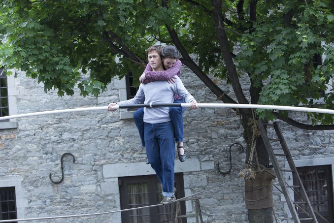 프티가 그날 하늘에서 행한 퍼포먼스는 삶의 목적에 대해 생각해게 해준다. 그의 꿈은 세상에서 가장 아름다운 점 두 개를 찾아서 잇고 그 사이를 걸어서 건너는 것이었다. 공군이었던 그의 아버지는 줄만 타는 아들이 못마땅했고, 결국 그는 집을 나와 서커스 극단을 찾아간다. 파파 루디(벤 킹슬리)와 여러 친구들의 도움으로 그는 파리 노트르담 성당의 두 타워 사이를 건너고, 호주의 하버브리지도 건넌다. (하버브리지 줄타기는 이 영화엔 나오지 않지만 <맨 온 와이어>에 등장한다.)