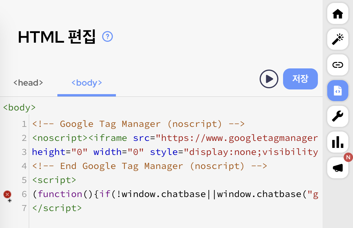 7. oopy 관리자 화면으로 돌아와서, HTML 편집 탭에서 <body>에 복사한 코드를 붙여넣으세요.