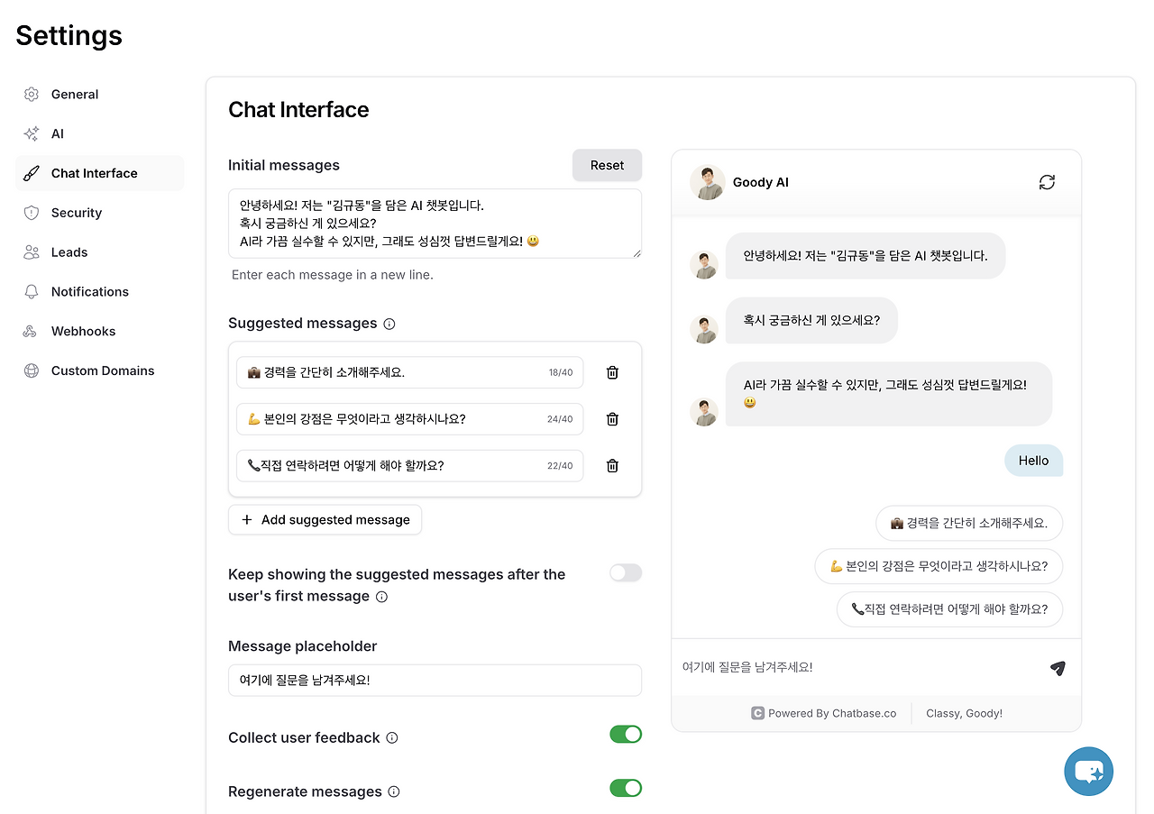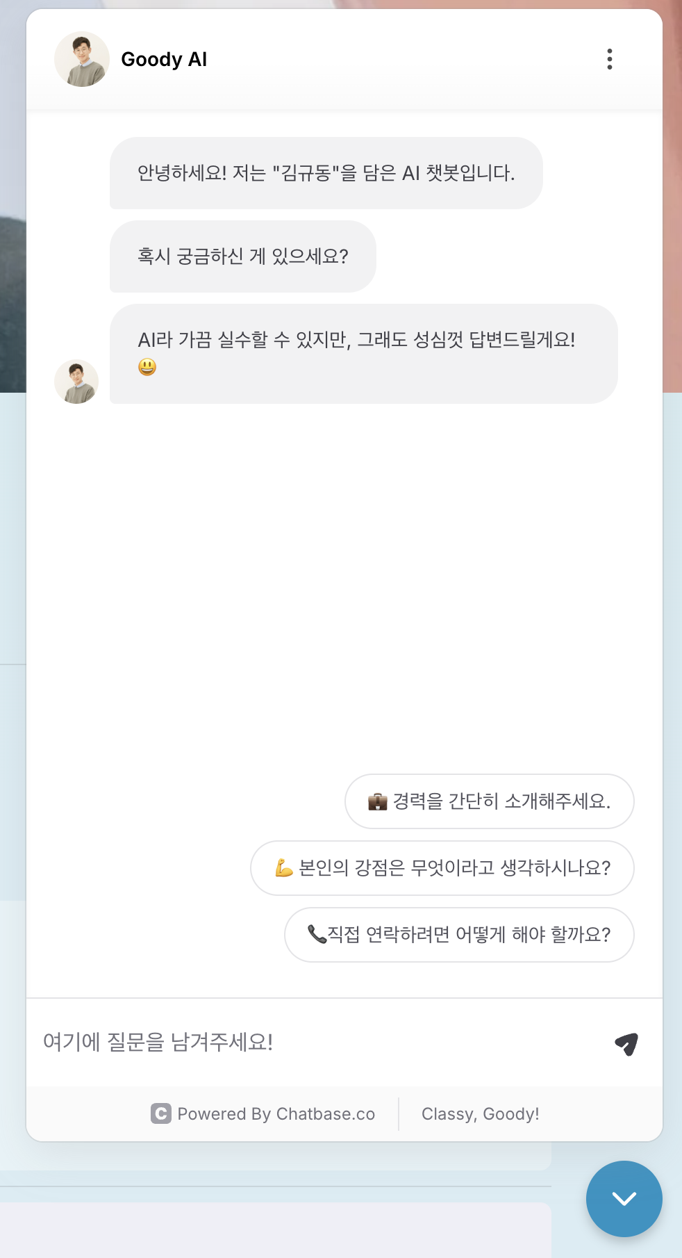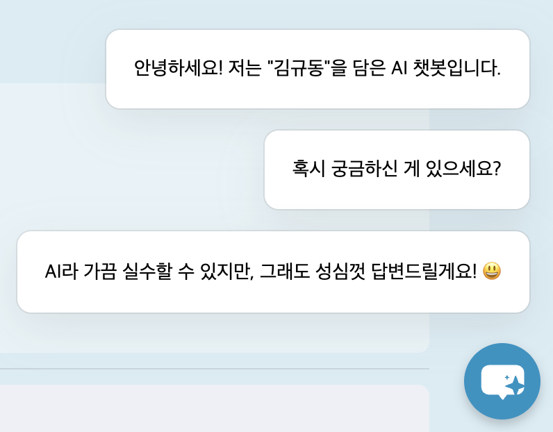 이제 내 웹사이트에 나만을 소개하는 상담봇이 짜잔! 나타납니다.
