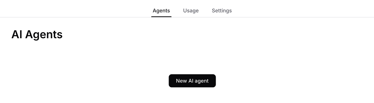 2. 가입절차가 끝나면 나오는 첫 화면에서, 가운데 "New AI Agent"를 누릅니다.