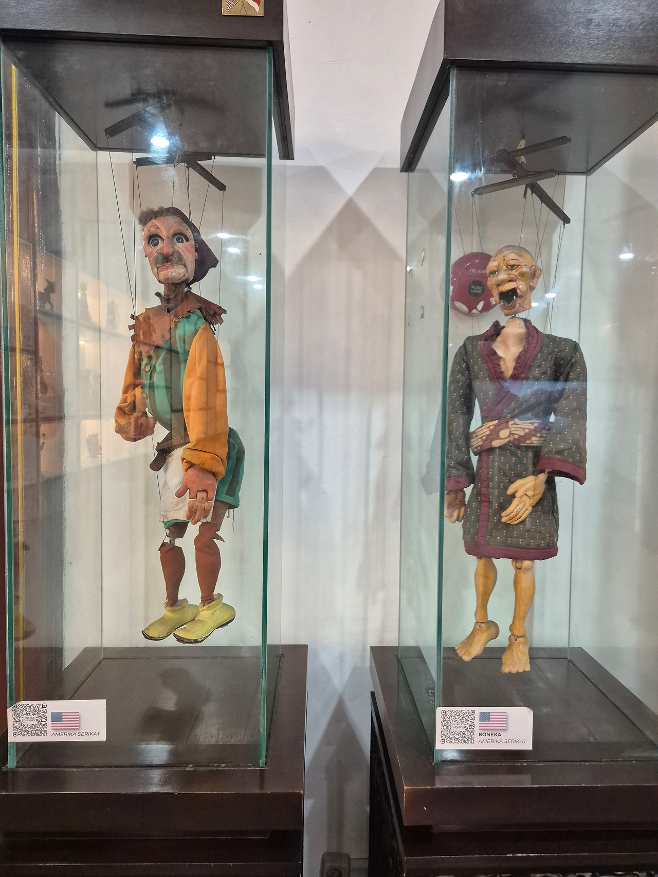 와양 박물관은 전 세계의 다양한 인형들을 전시하고 있다. 유사한 문화를 공유하고 있는 말레이시아와 캄보디아의 와양 쿨릿은 물론이고, 전 세계 다양한 국가의 인형극에서 사용하고 있는 인형들, 즉 와양 골렉과 유사한 인형들이 많이 보인다. 박물관에서 수많은 인형들을 전시한 이유는 인도네시아가 인형극의 기원을 가지고 있다는 자부심 때문이다. 실제로 박물관은 전 세계 인형극이 인도네시아로부터 전파되었다고 말한다.