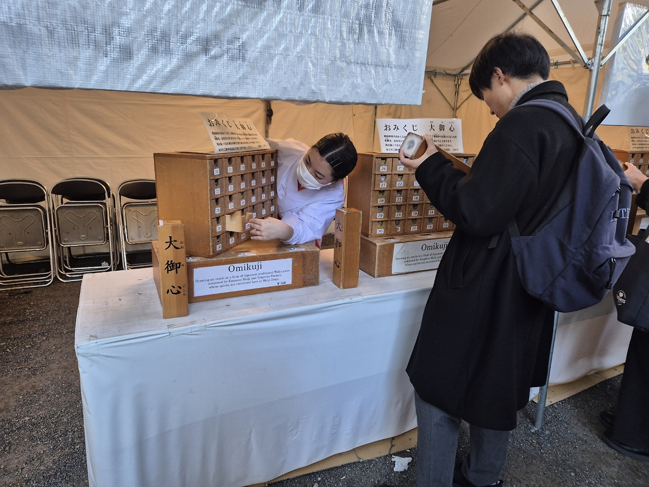 한 해의 마지막 날 방문한 메이지 신궁(明治神宮)에는 수많은 현지인들과 관광차 온 외국인들까지 너무나 많은 사람들로 북적였다. 한 해를 마무리하고 새로운 시작을 기원하는 종교적∙문화적 의례를 위해 신사(神社)에 방문하는 일본인들이 많기 때문이다. 또한 신사 참배 후에는 한 해의 운세를 점치는 오미쿠지(おみくじ)를 뽑거나, 액운을 막거나 복을 부르기 위한 부적 오마모리(おまもり)나 엔기모노(えんぎもの)를 구입한다.