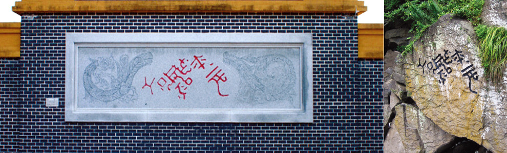 서복전시관 바로 옆에 있는 정방폭포에는 서복이 다녀갔다는 의미의 '서불과지(徐市過之)'라는 글자가 새겨져 있다. 물론 이 글자는 최근에 새긴 것이다. 2,200여 년 전 글이 이토록 선명하게 남아있을 리 없지 않은가? 원래는 정방폭포 옆에 새겨져 있었는데, 서귀포에서 유배생활(1840~1848)을 한 추사 김정희가 이 글자를 탁본으로 남겨두었다는 기록, 1877년 제주목사 백낙연이 서복 전승을 듣고 탁본을 하였는데 그것이 중국 고대문자라 해독할 수 없었다는 기록이 남아있어 실제 새겨져 있었을 것으로 추정하고 있다.
