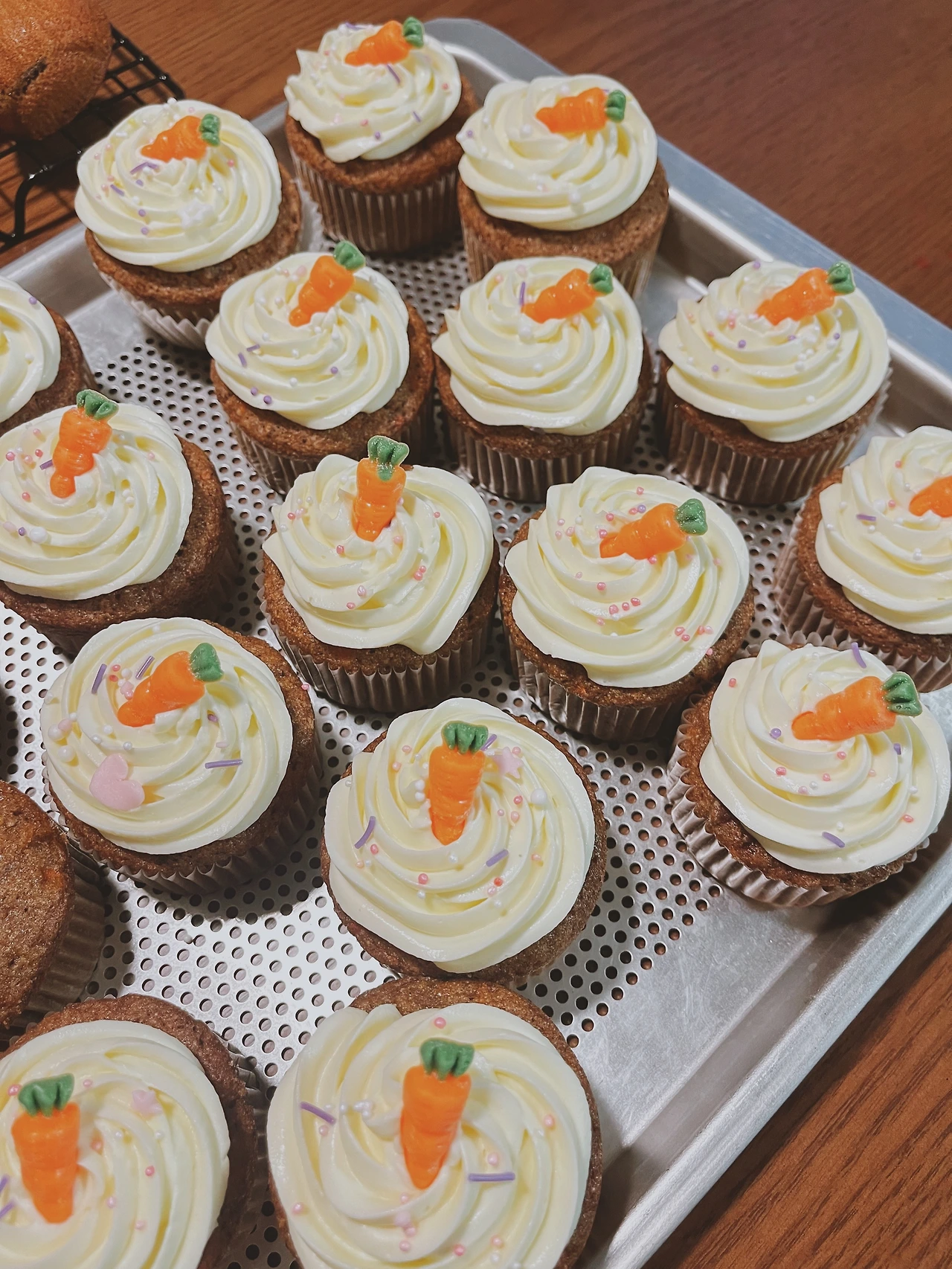 개인적으로는 시나몬 향을 좋아하기 때문에 크림치즈 프로스팅 없이 오븐에서 꺼내 한 김 식힌 당근 머핀을 있는 그대로 먹는 것을 더 좋아한다. 베이커의 가장 큰 특권이자, 베이킹이 가져다주는 힐링에 온전히 젖어드는 순간이 바로 이때이다.