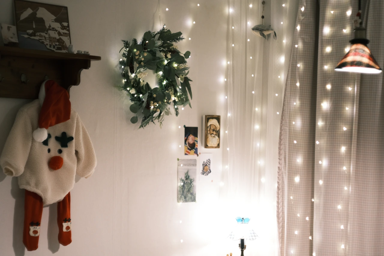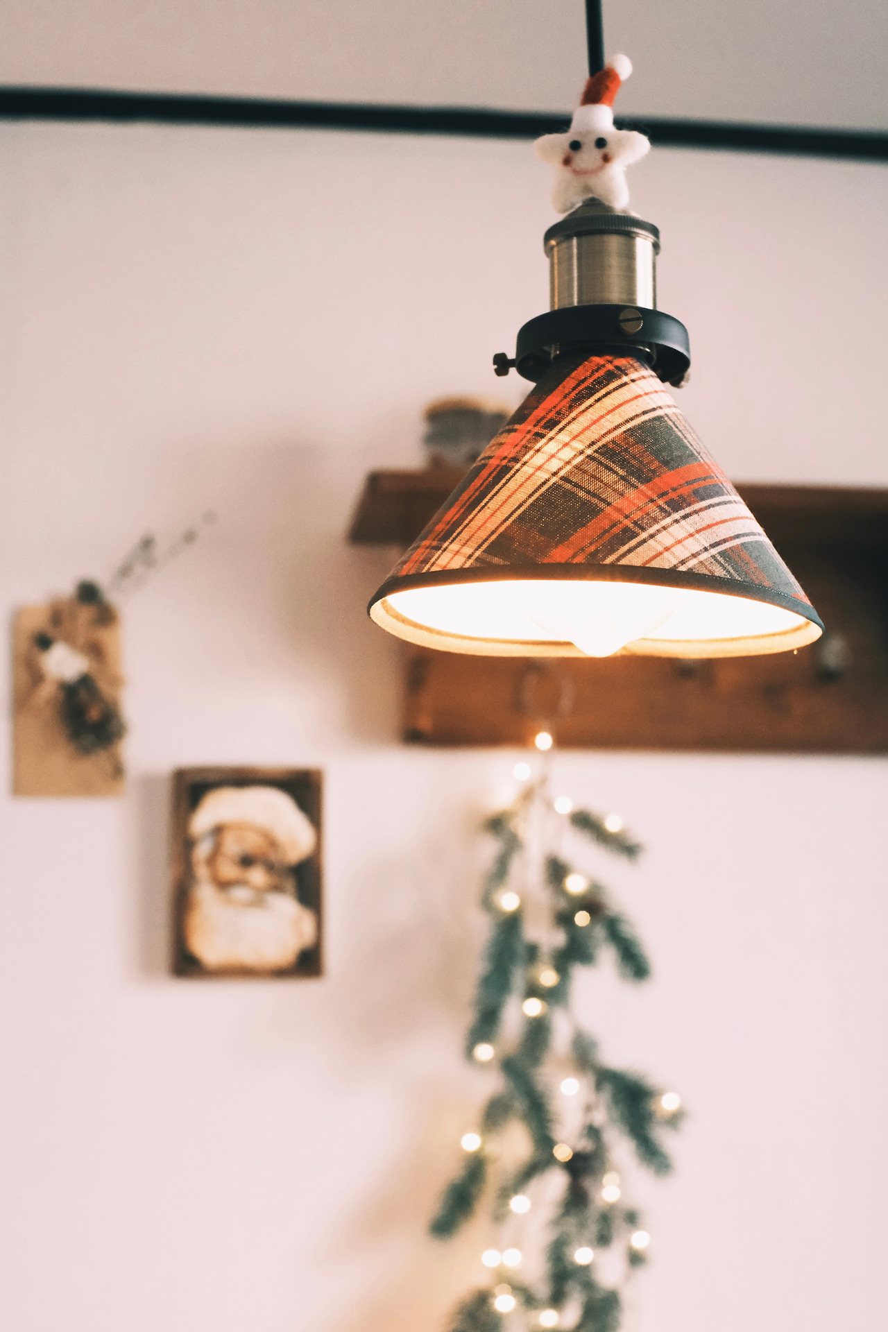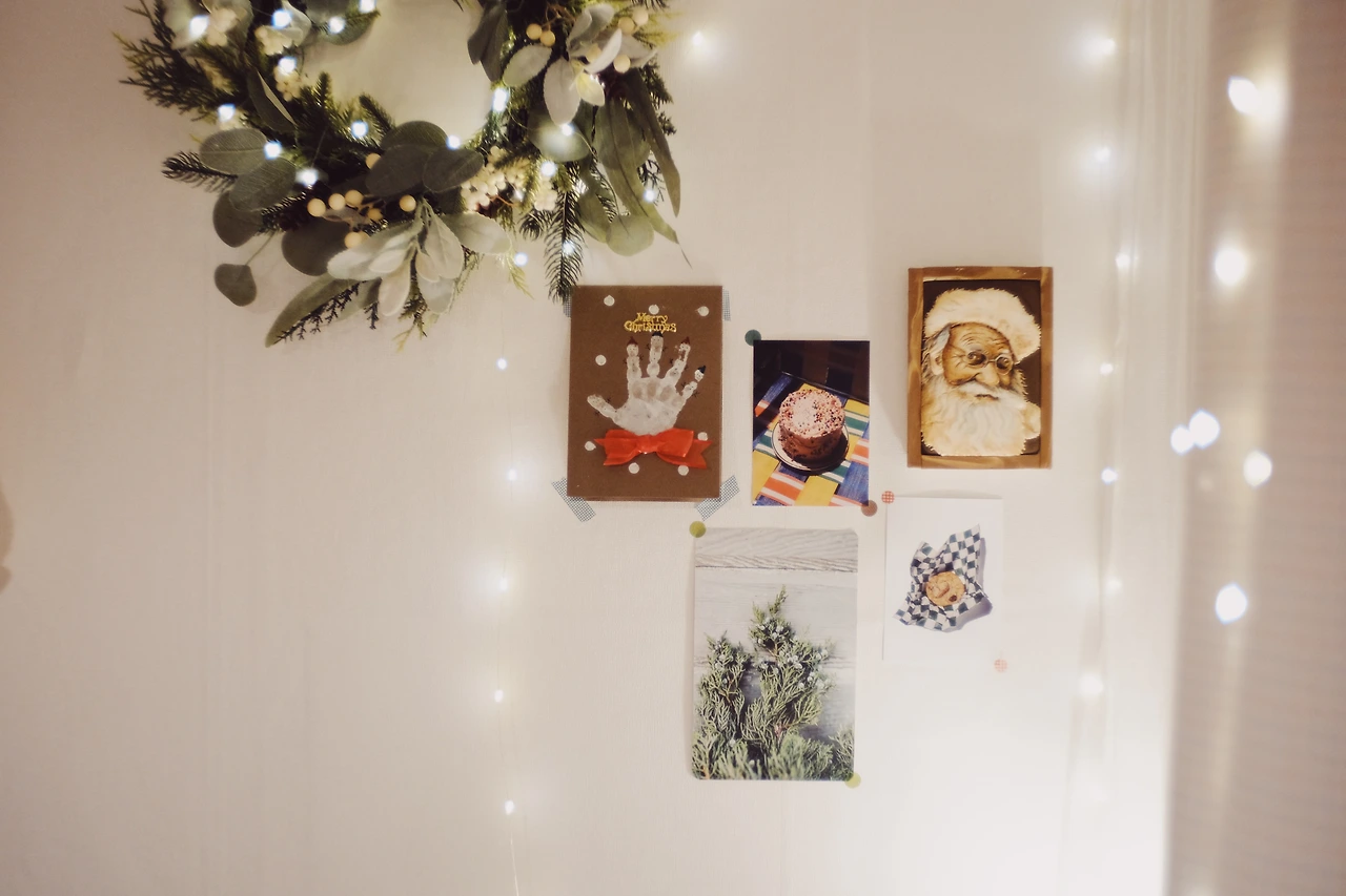 그렇게 설레는 날들 속에서도 할 일로 마음이 분주하다. 커튼을 교체하고, 그 위로 꼬마전구를 달아준다. 벽에는 커다란 리스와 산타클로스 액자, 그와 어울릴만한 분위기의 엽서들로 데커레이션 해준다. 산타클로스 액자에는 숨겨진 비밀이 있는데, 진짜 바닐라 쿠키 위에 설탕으로 입체감을 준 '아이싱 쿠키'와 슈거 페이스트를 더해 액자처럼 만든 것이다.