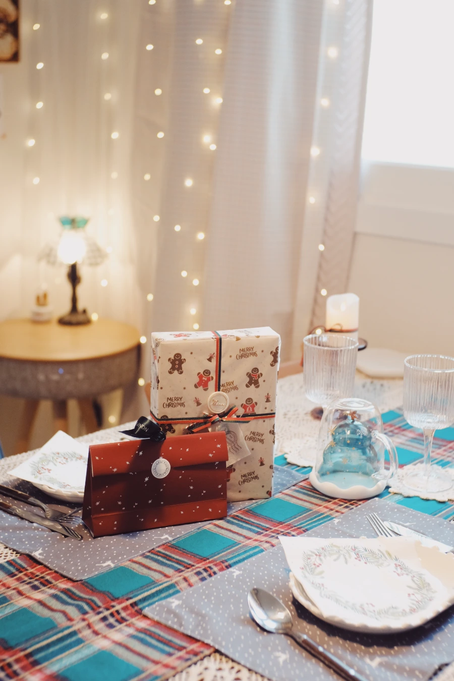 그 위에는 크리스마스 분위기의 정점인 체크 러너를 깔아준다. 쉐이드와 세트처럼 딱 맞아서 마음에 든다.