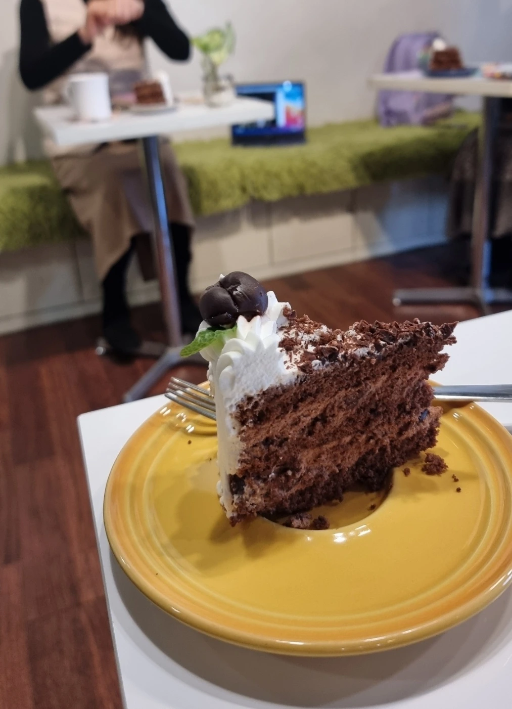 길고 긴 대화와 함께 절반을 먹고 나서야 그녀는 원래 초콜릿 케이크를 좋아하지 않는다고 이야기했다. 하지만 이렇게 맛있는 케이크는 처음 먹어 본다며, 한 조각을 더 먹어도 되겠냐고 물었다.