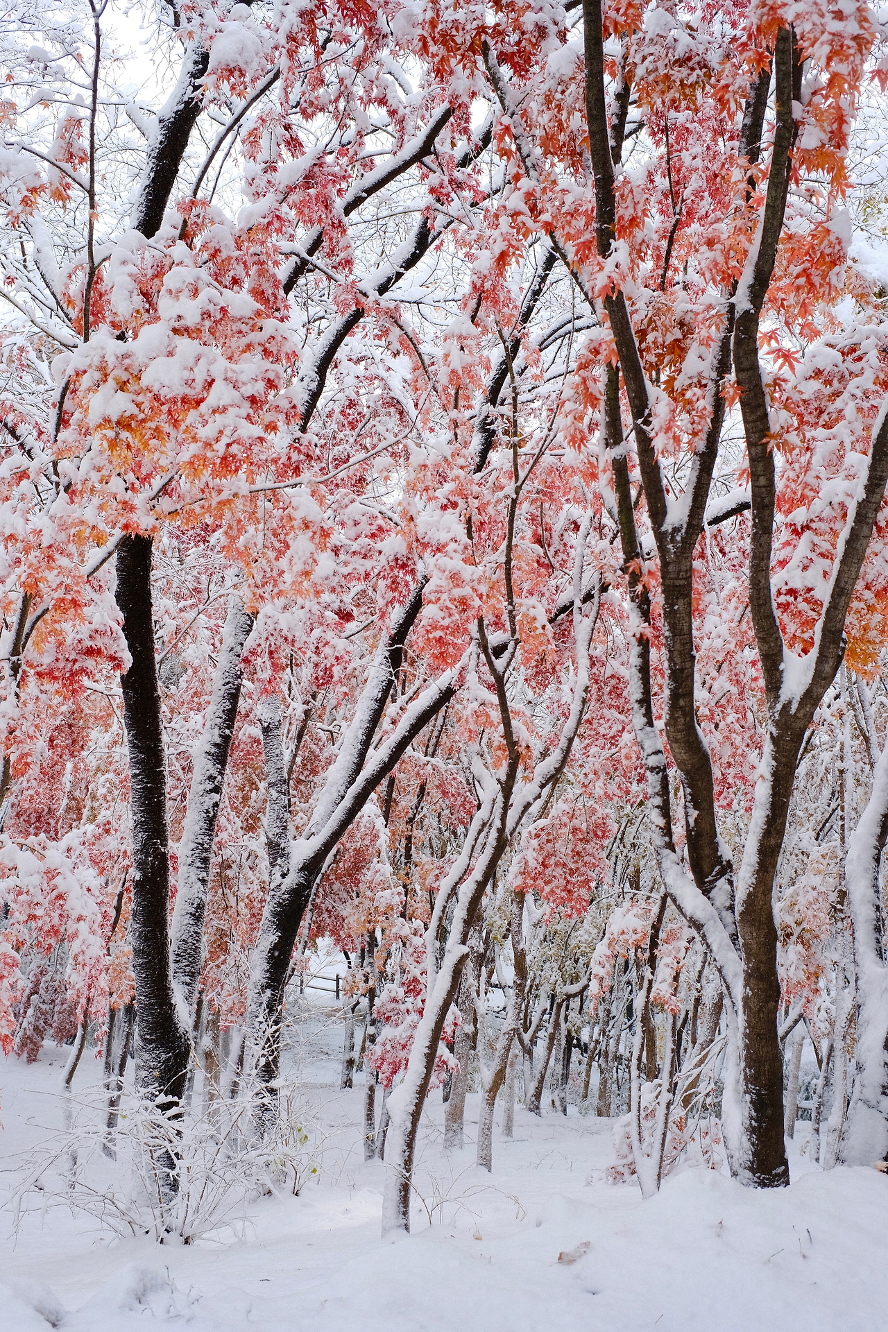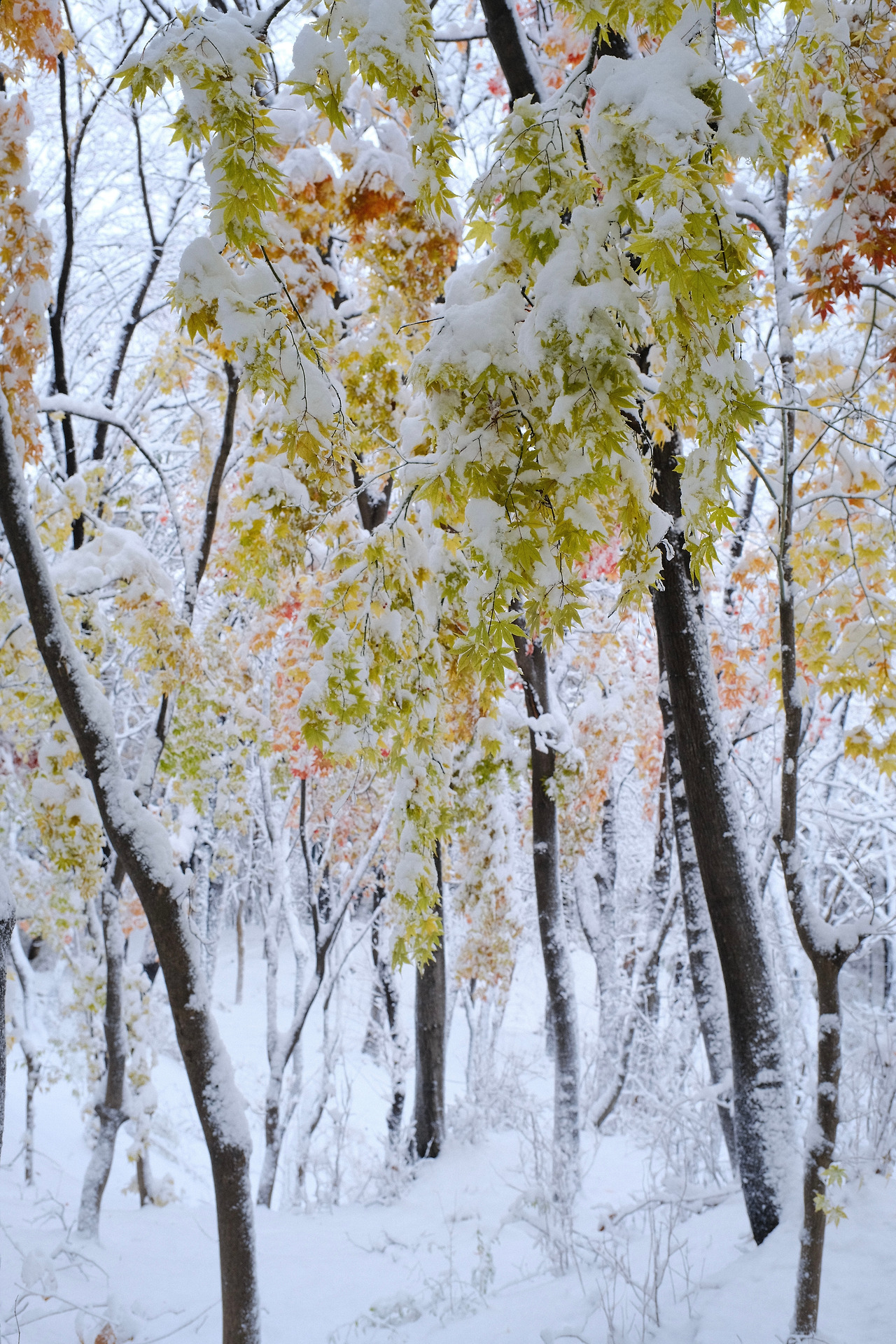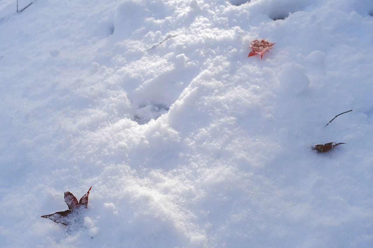 항상 다니던 산책길은 이미 눈 아래 파묻혀 사라졌고, 미처 지지 못한 단풍 위로 내려앉은 눈은 생경한 풍경을 만들어냈다. 가을 위에 덧씌워진 겨울은 평생 본 적 없는 풍경이었다. 낯설고도 아름다운 그 숲에 한참을 머물러 눈으로 먼저 담고, 사진으로도 담았다. 남은 카메라 배터리는 두 칸뿐이었다. 조바심이 났지만, 내가 그 풍경 안에 있다는 것만으로도 이내 마음이 평온해졌다.