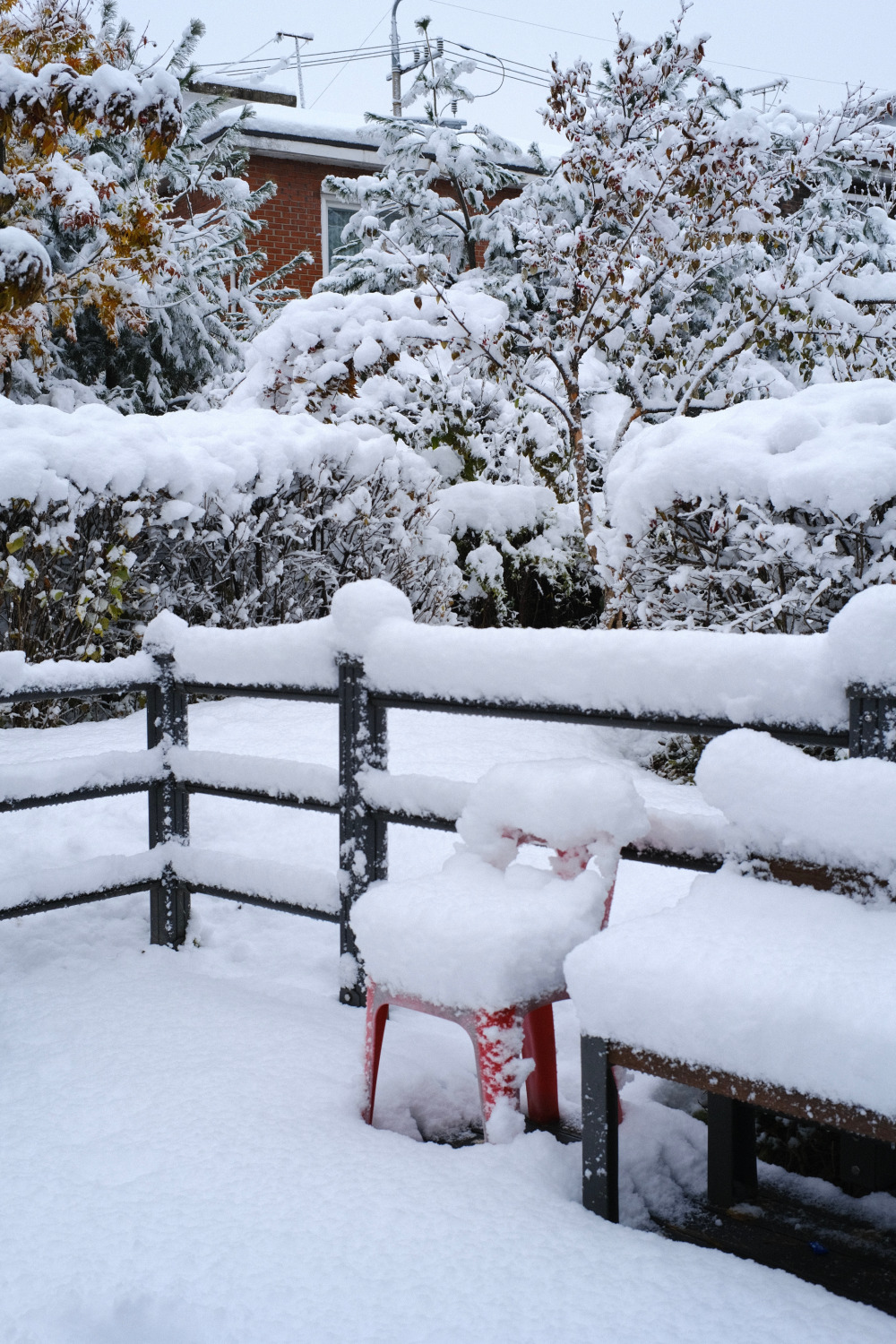 저것 좀 봐, 첫눈이 내렸네! 작은 사람과 온기를 나누며 우리는 한 동안 창 밖의 하얀 풍경을 감상했다. 눈 놀이를 하자며 꾀어내 평소보다 이른 준비를 마치고 카메라를 챙겨 밖으로 나갔다.