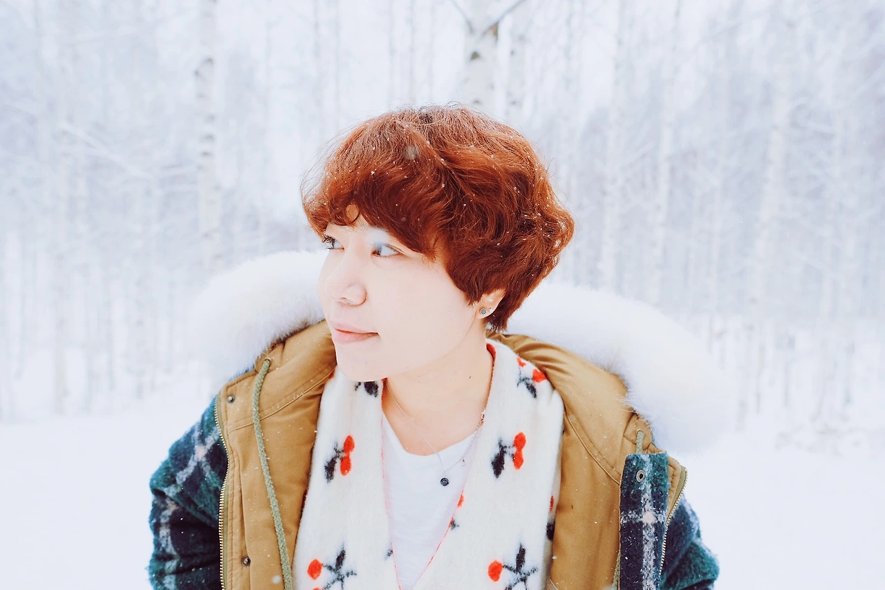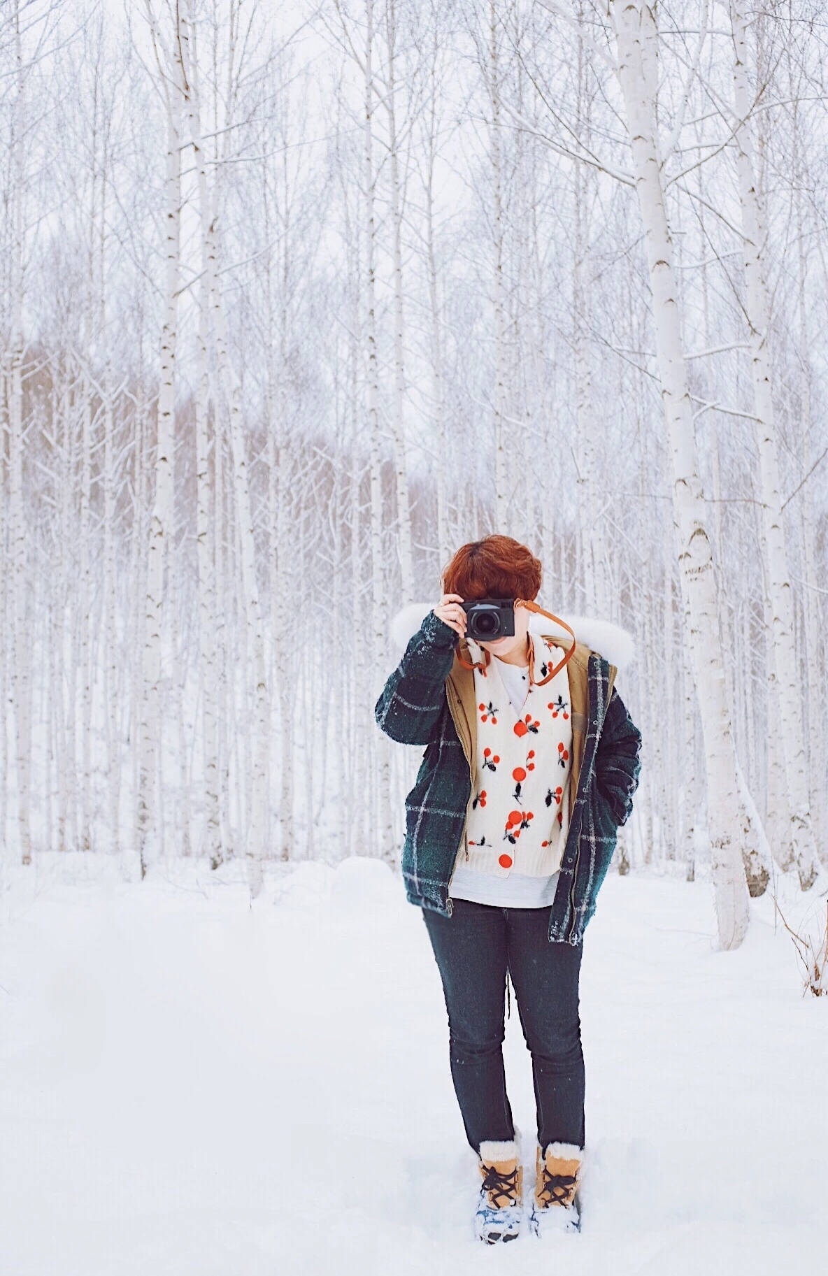 드디어 도착한 자작나무숲은 세상의 모든 색이 사라진 것처럼 하얗기만 했다. 이국적인 풍경에 우리는 연신 예쁘다! 를 연발하면서 많은 사진을 찍었다. 그때의 나는 빨간 머리였는데, 그래서 더욱 그 풍경에 잘 어울렸던 것 같다.