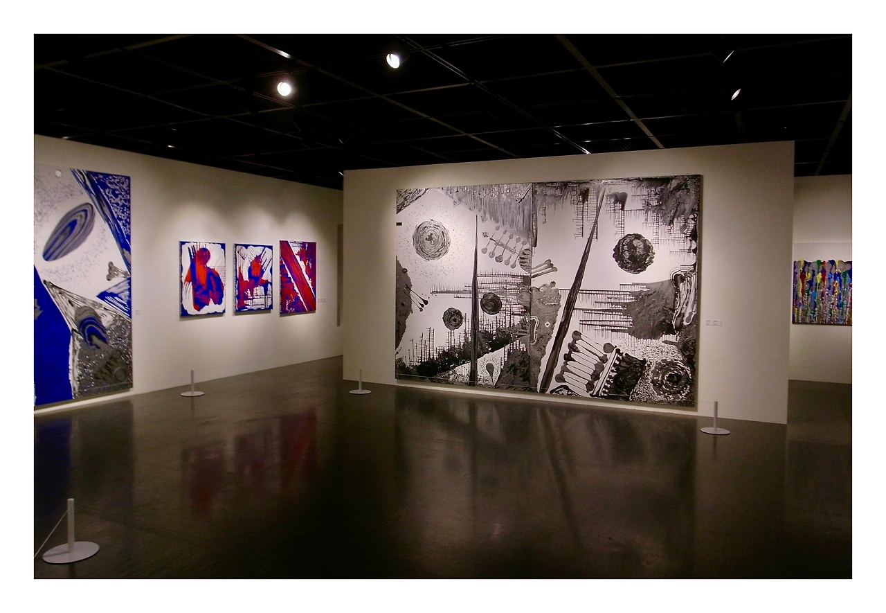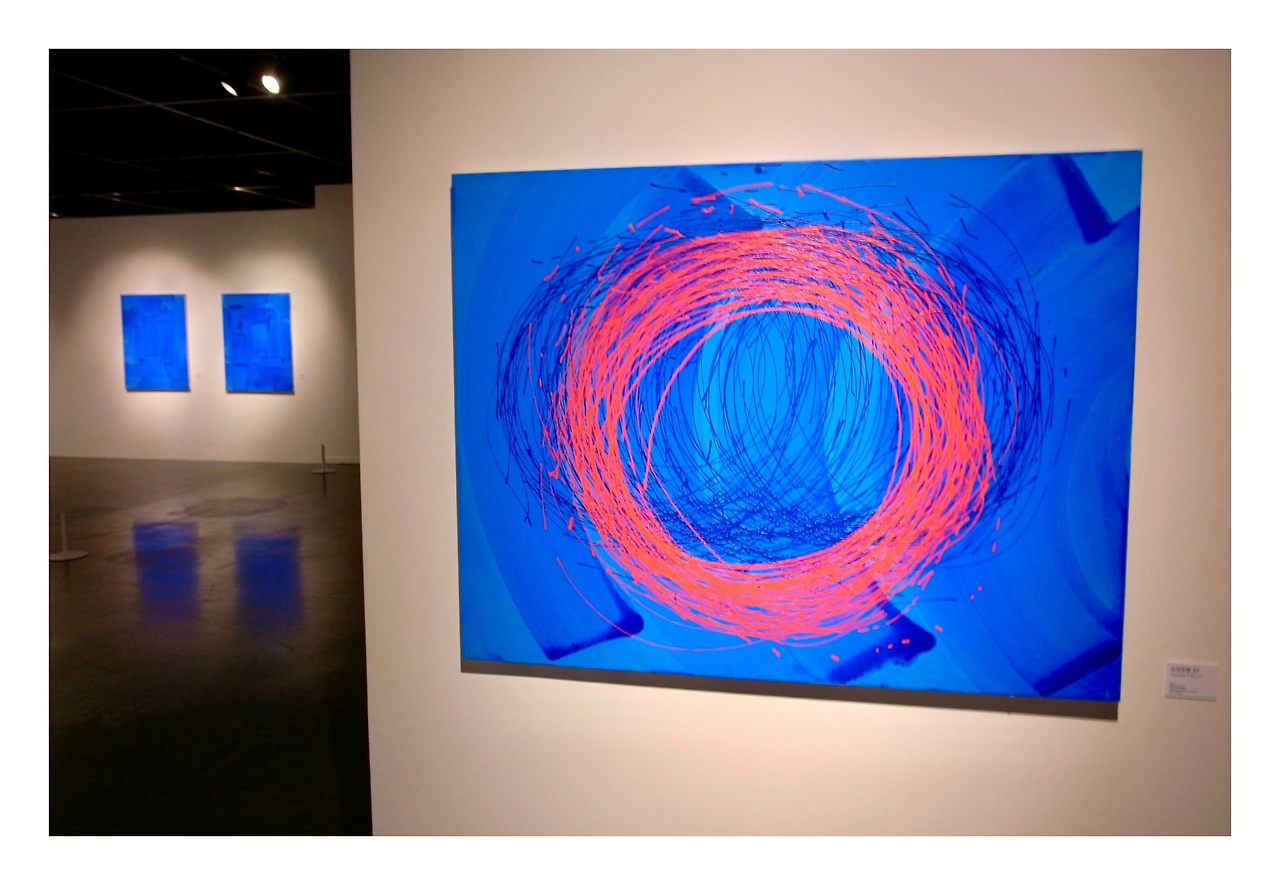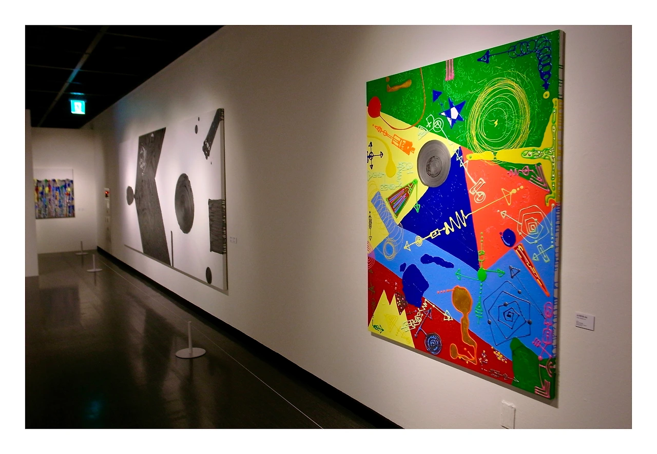그런데 <김수철: 소리그림>으로 그 경계를 조금 낮추게 되었습니다. 김수철이라는 익숙한 이름을 잠시 접어두고 보니 화면 위에는 생각보다 단단한 밀도가 있었습니다. 그의 음악이 하나의 장르로 묶이지 않듯 전시된 작품들 역시 특정한 형식에 머무르지 않습니다. 캔버스에서 색이 튀어 오르고 선이 춤을 추며 시간과 감정이 뒤섞여 있습니다. 그의 작업을 바라보는 동안 소리, 리듬, 색, 선, 여백, 촉감, 사색 같은 말들이 머릿속을 떠돌았습니다. 마치 하나의 예술이 또 다른 감각의 문을 열어주는 듯했습니다. 단순히 시각적인 것이 아니라 ‘소리그림’이라는 말이 과장이 아니었습니다. 뻔한 소리 같이 들리겠지만 어떤 작품 앞에서는 귀로 듣는 대신 눈으로 음악을 듣는 기분이었습니다.