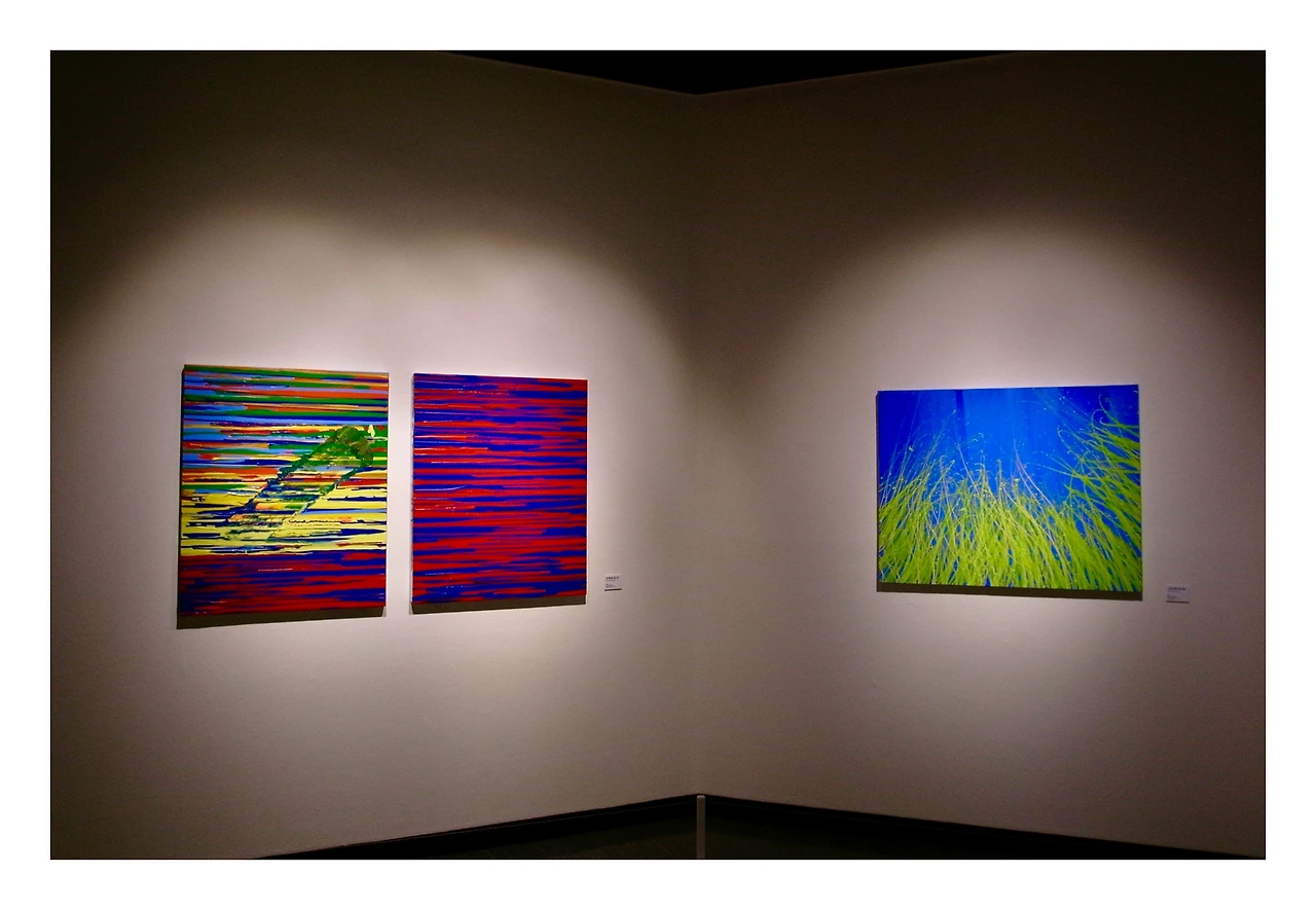 전시장 구성도 인상적이었습니다. 다채로운 작가의 음악처럼 각 작품이 반영된 색채와 소리, 리듬감은 어떤 때는 서로 겹쳐지는 듯 반복되다가도 또 어느 순간엔 전혀 다른 세계로 전환되는 듯했습니다. 시각과 청각이 섞이며 만들어낸 감각이랄까요. 무엇을 과시하기보다 자신이 오래 다뤄온 감각을 다른 방식으로 옮겨 놓은 기록처럼 느껴졌고, 음악가의 그림이라기보다 한 사람이 오래 축적해 온 시간의 또 다른 표현으로 느꼈습니다.