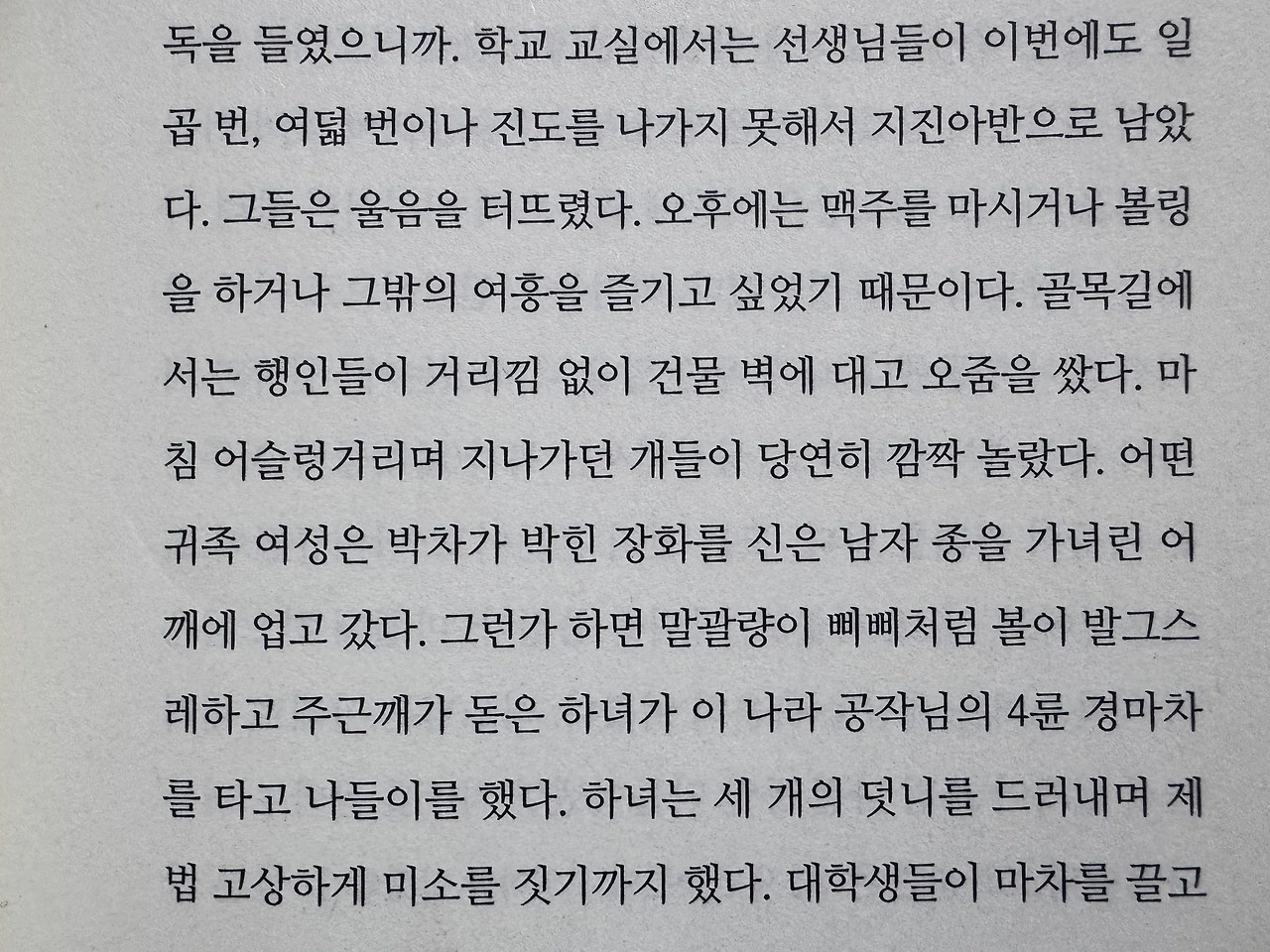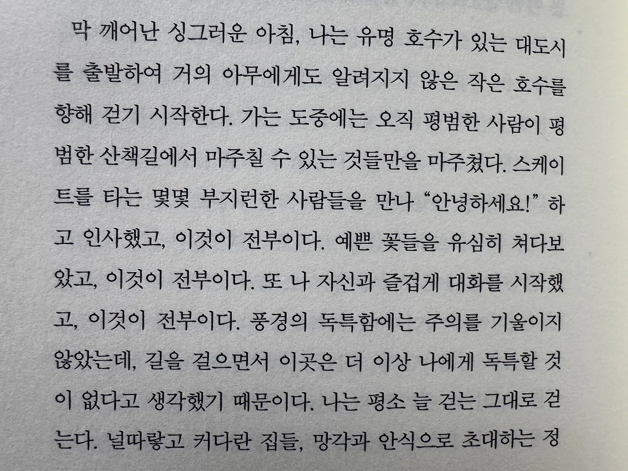 '스케이트를 타는 몇몇 부지런한 사람들을 만나 "안녕하세요" 하고 인사했고, 이것이 전부이다' (배수아 역)