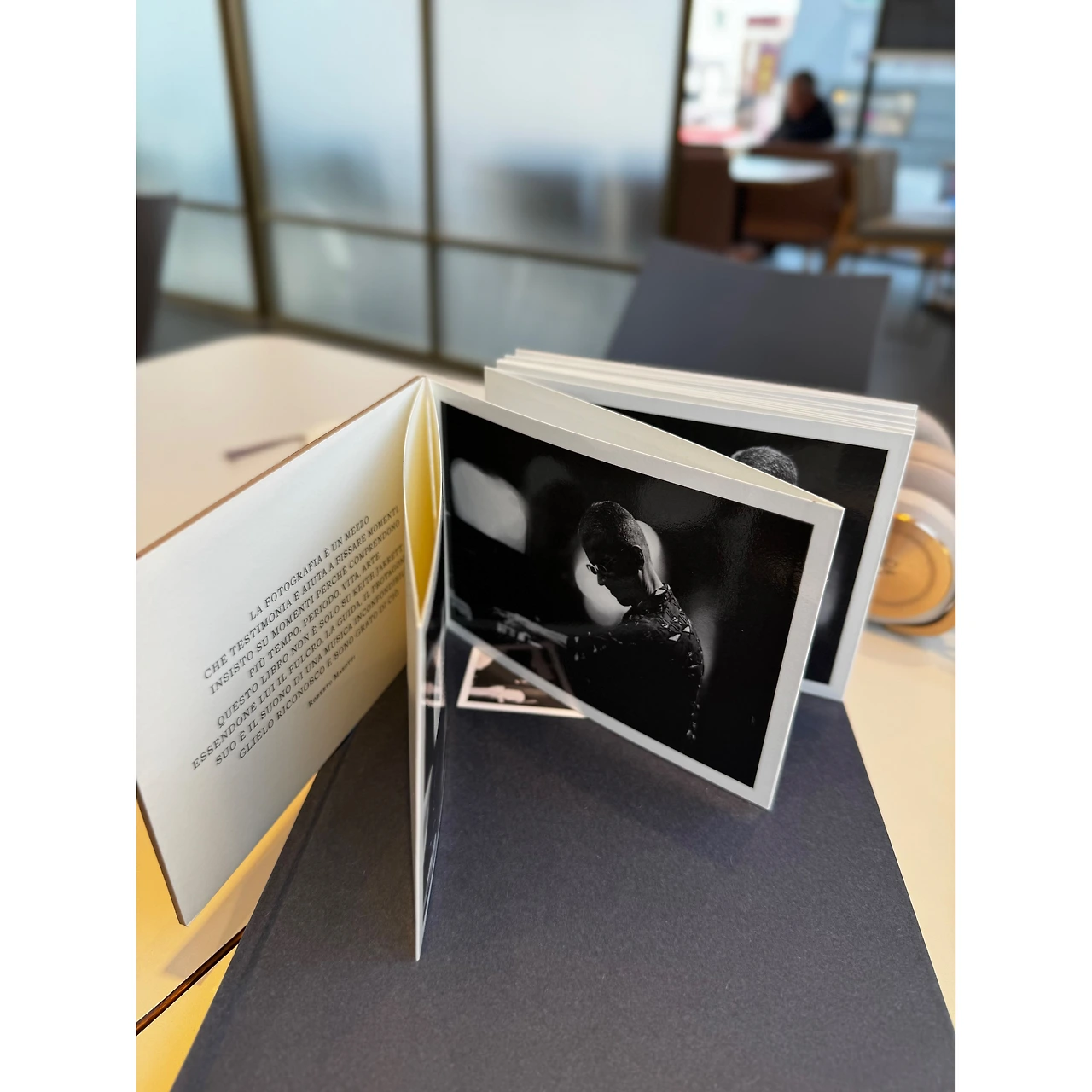 부록으로 함께한 로베르토 마조티의 사진들은 이 책의 또 다른 문장들이다. 연속 촬영된 연주 장면 속에서 한 인간이 음악 속으로 사라지는 과정을 목격할 수 있다. 표정은 점점 사라지고 몸은 하나의 도구가 되며 마침내 인물과 소리는 구분되지 않는다. 사진이지만 정지되어 있지 않고, 책이지만 소리가 들리는 이유다. 이 이미지들은 설명하지 않는다. 다만 바라보는 이의 호흡을 느리게 만들면서 출판사 이름 <시간의흐름>처럼 그저 천천히 흘러가는 시간의 흐름을 느끼게 할 뿐이다.