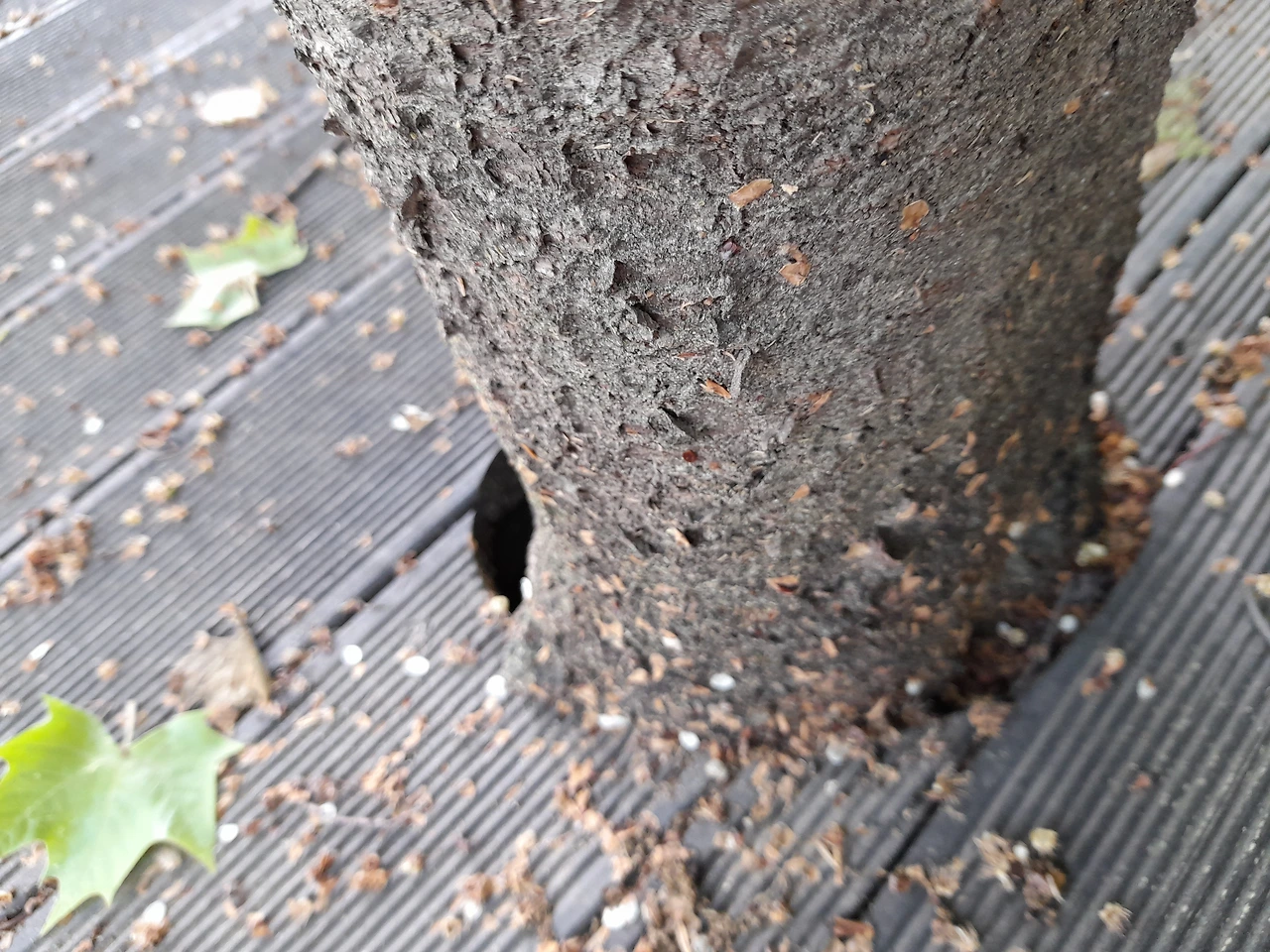 공사를 한지 오랜 시간이 지난 것으로 보인다. 나무들이 자라서 그 원과 맞부딪치고 있었다. 어떤 나무는 원에 꽉 끼어 몸이 파이고 있었다. 말을 못 하는 식물이지만 얼마나 아플까.