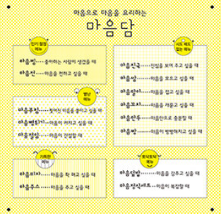 그리고 다시 질문을 던진다. 음식은 편식하지 말고 골고루 먹으라고 하는데, 그동안 내가 가장 많이 먹었던 마음은 무엇인가? 가족이든 지인이든 관계에 지쳐 아무 말도 하고 싶지 않을 때, 실망했을 때 보통 '마음말이'나 '마음덮밥'을 선택하곤 한다. 마음을 접거나 마음을 감추는 방법을 많이 선택하고 있다. 저리도 많은 요리법이 있는데, 과연 나는 내 마음을 잘 들여다보고 선택하고 있는 것인지 다시 나에게 질문하고 있다.