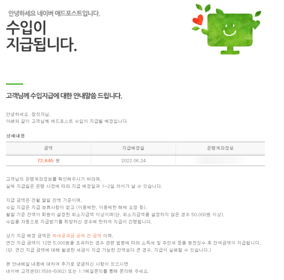 반면, 블로그에는 내가 노력한 만큼 수익을 낼 수 있다. 특히나 결혼 준비를 하면서 포스팅을 통해 수익을 얻을 수 있는 D웨딩 플래닝 업체를 이용하는 만큼 나는 블로그로 해당 웨딩 플래닝 업체를 홍보하고 현금화할 수 있는 포인트를 쌓고 있다. 한 달 동안 집중해서 블로그를 한 덕분에 벌써 80만원이라는 포인트를 쌓을 수 있었다. 뿐만 아니라 아직 한 달 차의 새내기 블로거임에도 협찬 연락을 받았으니 블로그를 통해 작은 수익이라도 얻을 수 있어 쏠쏠한 재미가 있다. 마지막으로 애드포스트로 하루에 1,000원꼴로 광고비를 얻고 있다. 사실 애드포스트 수익은 정말 작은 돈이지만 가만히 놔둬도 들어오는 수익이니 마다할 이유가 없다.