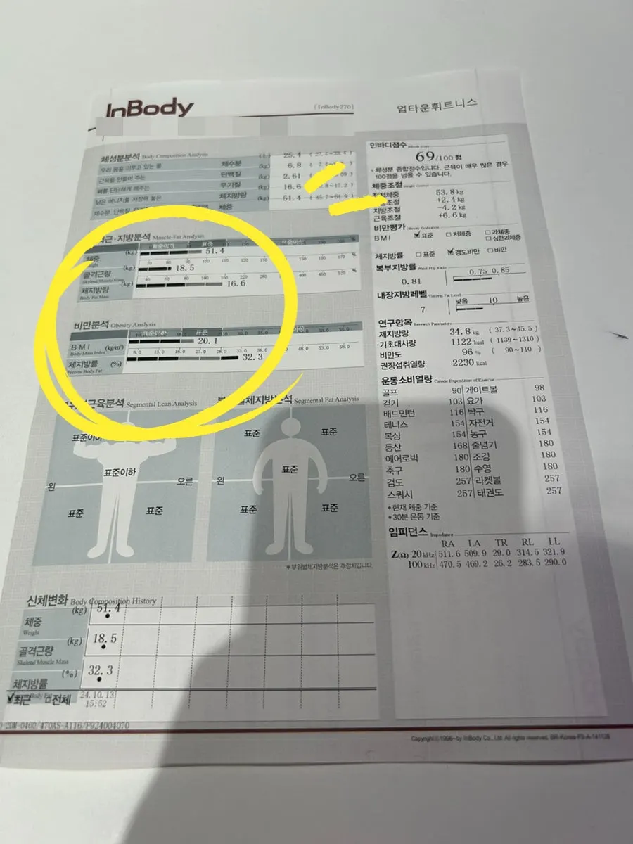 그리고 그 셀렘을 직접 확인해 보고자 헬스장에서 다시 인바디를 재보는데, 어랏?! 체지방율 31%..?