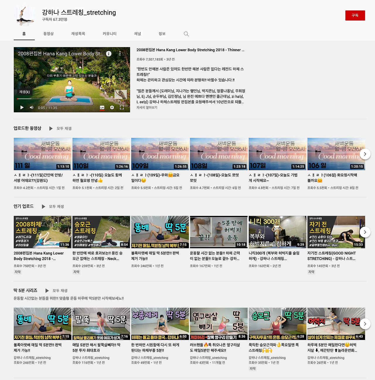 1. 강하나 유튜버님의 스트레칭 영상을 자유롭게 정합니다. (다른 영상을 참고해서 스트레칭 하셔도 좋습니다)
