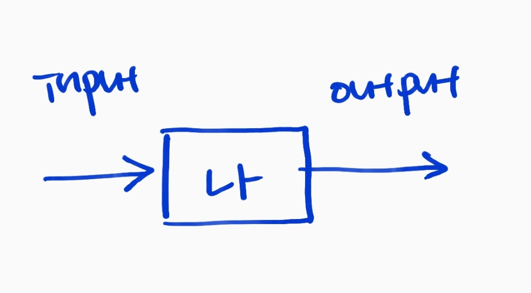 스트레스를 바라보는 내 관점은 전자보다는 후자에 가깝다. 스트레스를 어떻게 수용하느냐에 따라 나로부터 나오는 반응이 달라질 수 있다고 본다. 아래 그림에서 input을 스트레스로 생각해보자. input은 나라는 존재로 수용되어 소화 과정을 거쳐 output의 형태로 배출된다. 나를 거치지 않고 input이 output으로 바로 나가는 경우는 없다.