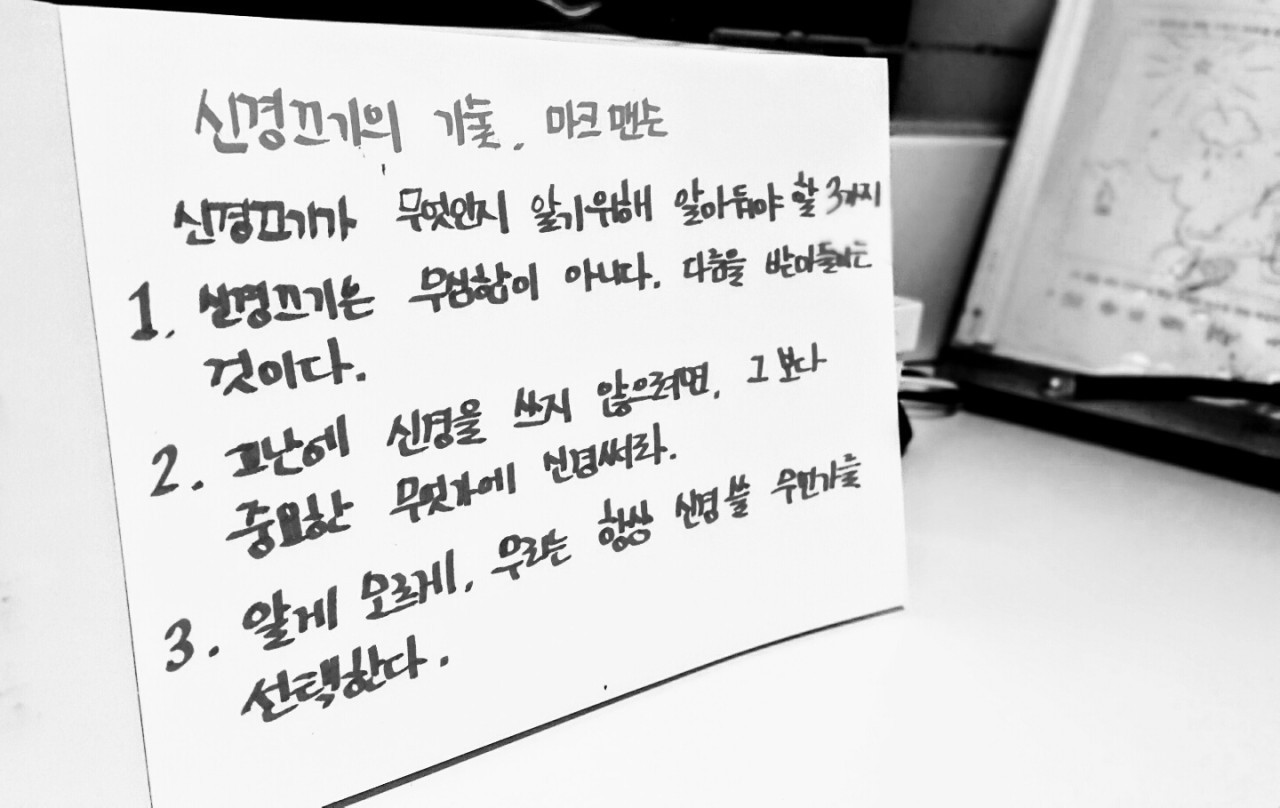 하루에 한 메시지를 전달하고 필사하며 자신의 생각을 정리해보는 필사모임을 5개월째 운영하고 있다. 벌써 수십 권의 책 속에 나오는 132개의 문장(메시지)이 모였다.「필사로 배우는 삶의 필살기」라는 매거진을 통해 모인 문장을 소개할 예정이다. 필사모임에 참여한 멤버들이 남겨준 코멘트들도 포함하여, 다양한 시선을 담아볼 생각. 첫 메시지는 2017년 말부터 작년까지 큰 히트를 쳤던 베스트셀러 『신경 끄기의 기술』(갤리온, 2017)의 문장이다.