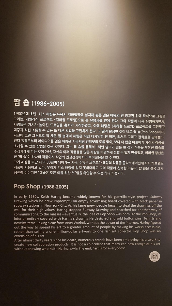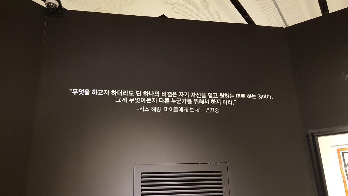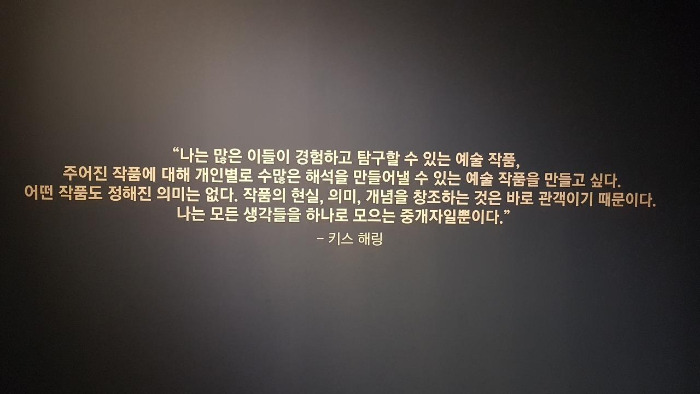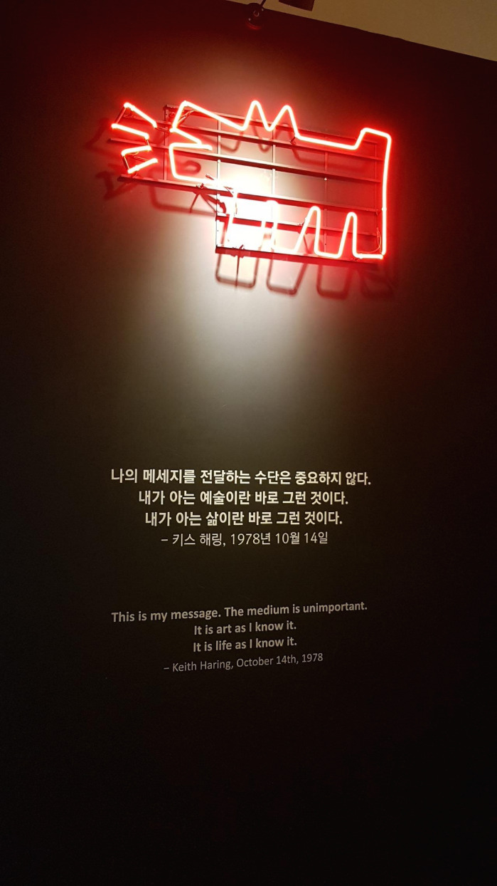 무엇을 하든지 잘 해내는 비결로 스스로를 믿고 원하는 일을 해야 한다고 한 그의 주장처럼, 그는 사람들의 잠재되어있는 가능성을 믿었던 것 같다. 시종일관 나와는 생각의 결이 조금 다르다고 생각하고 있었는데, 이런 부분은 공감하며 고개를 끄덕였다. 전시회를 돌아보며 만난 키스 해링의 시선은 꽤나 생각할 거리를 던져 주었다. 늘 비슷한 시선들을 쫒으며 기존 생각을 강화하던 삶에서 만난 새로운 시선. 사회의 반대하는 것에 대해 목소리를 적극적으로 펼쳐냈던 삶의 태도도 마음에 새기며 배웠다.