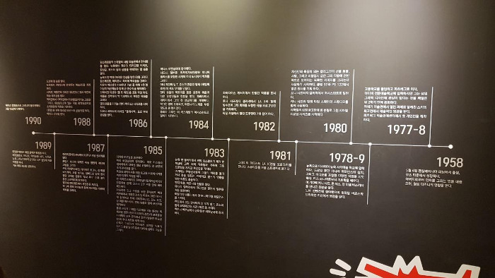 키스 해링은 에이즈 합병증으로 31살의 젊은 나이로 사망했다. 그래서 전시회에 나오는 모든 사진과 영상엔 젊고 에너지 넘치는 키스 해링의 모습만 보인다. 그런데 앤디 워홀과 친분이 깊었다고 해서 찾아보니 1958년 생이었던 점에 놀랐다. 나이로는 나의 부모님 세대 격 (갑자기 부모님 세대와 오버랩이 됐다 ㅋㅋ) 전시회에서 본 다큐멘터리에서 설명하는 키스 해링은 사람에 관해 완전한 낙관론자라고 했다. 그는 사람들을 좋아했고(모든 사람들을 사랑한다고 했다), 특히나 아이들을 좋아해 그들과 함께 작업하는 것을 선호했다.