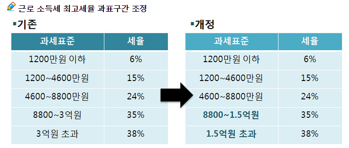 과세표준에 따라 구간별로 6~38%의 기준세율이 적용된다. 즉 내 연봉에서 공제 금액을 뺀 과세표준 금액이 3,000만원 이라면, 그중 1200만원은 6%의 세금이,