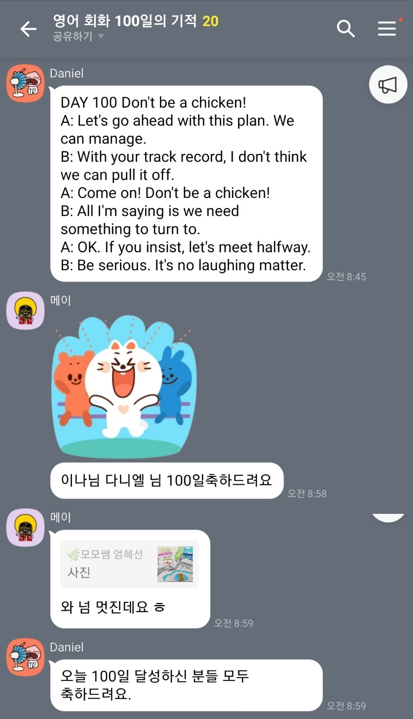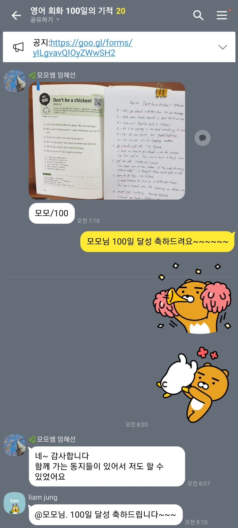 혹시 『영어회화 100일의 기적』책 호기롭게 외워보겠다고 사시고, 먼지만 쌓아두고 계신 분들 있나요? 이제 다시 먼지를 털어낼 시간입니다. 1일 차부터 한 걸음씩 다시 시작해 보아요~ 혼자 하기 힘드시면 오픈채팅방에 오셔서 함께 해요~ 영어와 친해지기 위해 20명의 경험수집러들이 오늘도 걷고 있습니다.