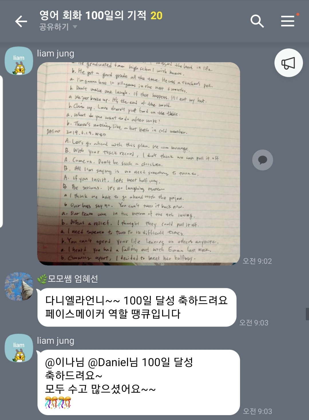 김민식 피디님의 『영어책 한 권 외워봤니?』를 읽고 시작한 '영어회화 100일의 기적' 모임에서 한 명도 아니고 무려 4명이나 동시에 100일을 달성하는 일이 발생했거든요. (네이버 오디오 클립의 이벤트에 참여하는 것이 큰 동기부여가 돼주었죠!) 그래도 꾸준히 100일을 달성한 경험수집러들의 이름을 명예의 전당에 올렸습니다.