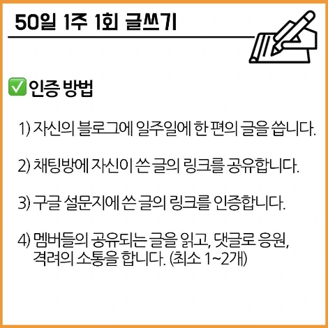 그래서 글쓰기 모임을 만들었습니다. 이 모임을 통해 여러분의 블로그에 콘텐츠가 차곡차곡 쌓이길 기대합니다. 한발 더 나아가 스스로를 발견할 수 있는 기회가 되시길 바랍니다. 망설이고 있다면 시작해보세요!