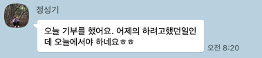작지만 선한 영향력은 채팅창을 타고 곳곳에 퍼져갑니다. 착한 일하기 동호회가 돼보는 것도 좋네요 ㅎㅎ