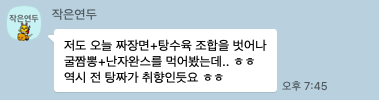 새로운 시도를 하며 기존의 자신의 취향을 한 번 더 확인해 보는 기회도 되죠. 저도 탕짜가 취향입니다! ㅎㅎ